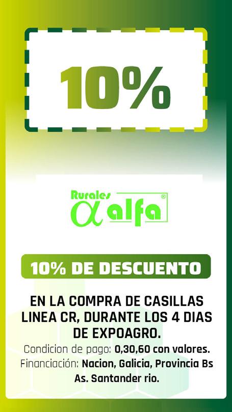 • Banco Provincia, una de las novedades de esta edición será el lanzamiento de promociones en dólares con Procampo Digital, la solución tecnológica que permite adquirir todo tipo de insumos desde el homebanking. Por primera vez, se podrán comprar insumos y pagarlos en dólares, en plazos de 180 y 270 días, desde el 11 hasta el 31 de marzo.