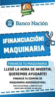 Banco Provincia concentrará su oferta crediticia en Procampo Digital, a través de la cual tendrá promociones con tasas especiales para MiPymes agropecuarias. Durante la muestra, se podrán adquirir insumos, semillas, fitosanitarios, fertilizantes, combustible, repuestos, implementos y hacienda en empresas adheridas como establecimientos a Procampo Digital. Asimismo, el BAPRO brindará financiamiento con tasas especiales para la compra de maquinaria agrícola y de bienes sustentables y tecnología aplicada al sector. También tendrá disponible una línea de crédito de capital de trabajo con una tasa sumamente atractiva, en el mes de la muestra. En Expoagro, los clientes de Banco Nación podrán acceder a interesantes ofertas con tasas más que convenientes y beneficios exclusivos para soluciones como la adquisición de maquinaria e inversiones en sistemas de riego. Durante el evento, se presentarán novedades para plataformas digitales y ampliación de la oferta de productos y servicios dirigidos al sector. Entre las principales ofertas de financiación de Banco Galicia, se destacarán los Convenios de Maquinaria hasta 48 meses, tanto en pesos como dólares, con la posibilidad de efectivizar la compra por medio de Preprenda. Además, la Compra de Insumos a través de Nera, tanto en pesos como