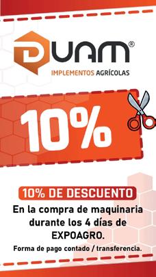 AgroNación, Banco Provincia y los principales bancos. Este año, el foco de la innovación estará de la mano del lanzamiento de un lubricante específico para los desafíos de la maquinaria agrícola. Se trata de EXTRAVIDA XVA 300, el nuevo lubricante premium para motores diésel, que ha sido diseñado para satisfacer las condiciones operativas propias del agro, tales como picos de intensidad de trabajo y horas ininterrumpidas de funcionamiento del motor, entre otras. De esta manera, se puede ex-