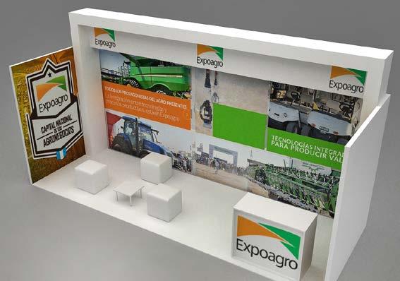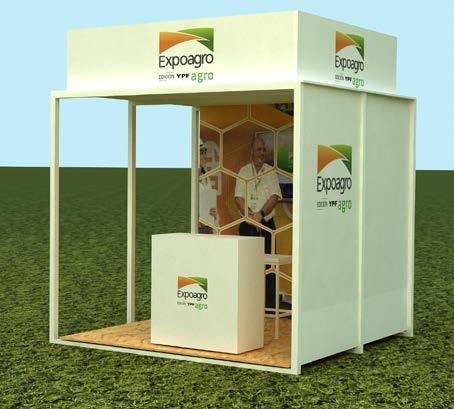 • Una carpa de 10 m x 12 m, instalada por Expoagro, con equipos de aire acondicionado, piso alfombrado, cielo raso, laterales con blackout e iluminación básica.