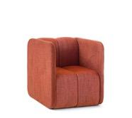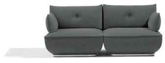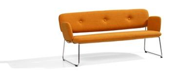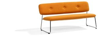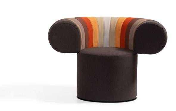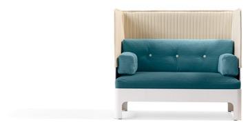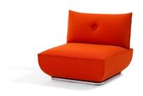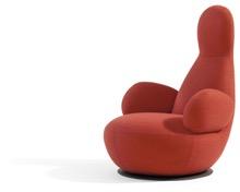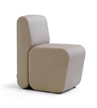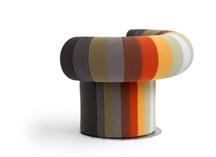 BIG TALK - a true conversation piece. A manifest in geometry: two circles define a throne for the art of sitting. The front part of the backrest and the seat shine in the same colour, whereas the back can be combined with textile swatches in a colour book format, all in order to give whatever space a touch of mighty colour. Big Talk thrives as an obvious solitaire, or can be placed back and forth to create a snakelike creation. Both the seat and the backrest are shaped out of moulded foam, all covered in different shades of the fabrics Gentle 2 or Uniform Melange made by Febrik for Kvadrat