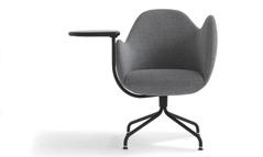 Jackson - to blend in or stand out. A small easy chair that will fit everywhere? Jackson provids premium comfort with moulded foam and a steel frame with nosag springs. Jackson can live all by itself or gathering together in small and large groups. Around a table, along a wall or completely on its own. Jackson is sometimes right in the middle enjoying the company, or he is that little uninvited one crashing in everywhere. The armrests in tubular steel and solid wood is a distinctive detail as manifest as a pair of red or black patent leather shoes. The chair itself can be covered with a soft sensual fabric, in sharp contrast with the distinctive horns and the metal feet. Combine them as you like with plenty of different fabrics and colours. The name is derived from the horned Jackson’s chameleon, but instead of merely blending in, our Jackson will both adapt and stand out in any space.