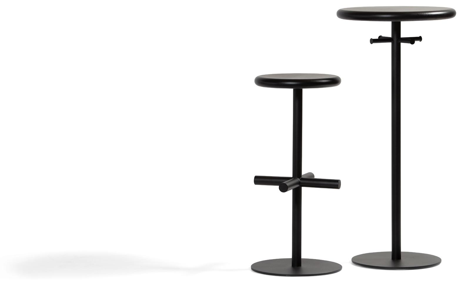 Two circles and a cross are all that is needed for a graphically precise and straightforward bar stool. OXO:s unusual footrest is as convenient as it can be and makes for an exact silhouette that will add character to any public or private space, be it at a kitchen island, a bar, or at high tables. Forget cumbersome and disorderly bar furniture and welcome a stylish and original simplicity. Chose a seat in massive wood or opt for the upholstered variant, the design should be monochrome and a number of colors are available. On the OXO Table the cross brings new functionality as a convenient and neatly placed coat hanger that lets you keep your belongings close.