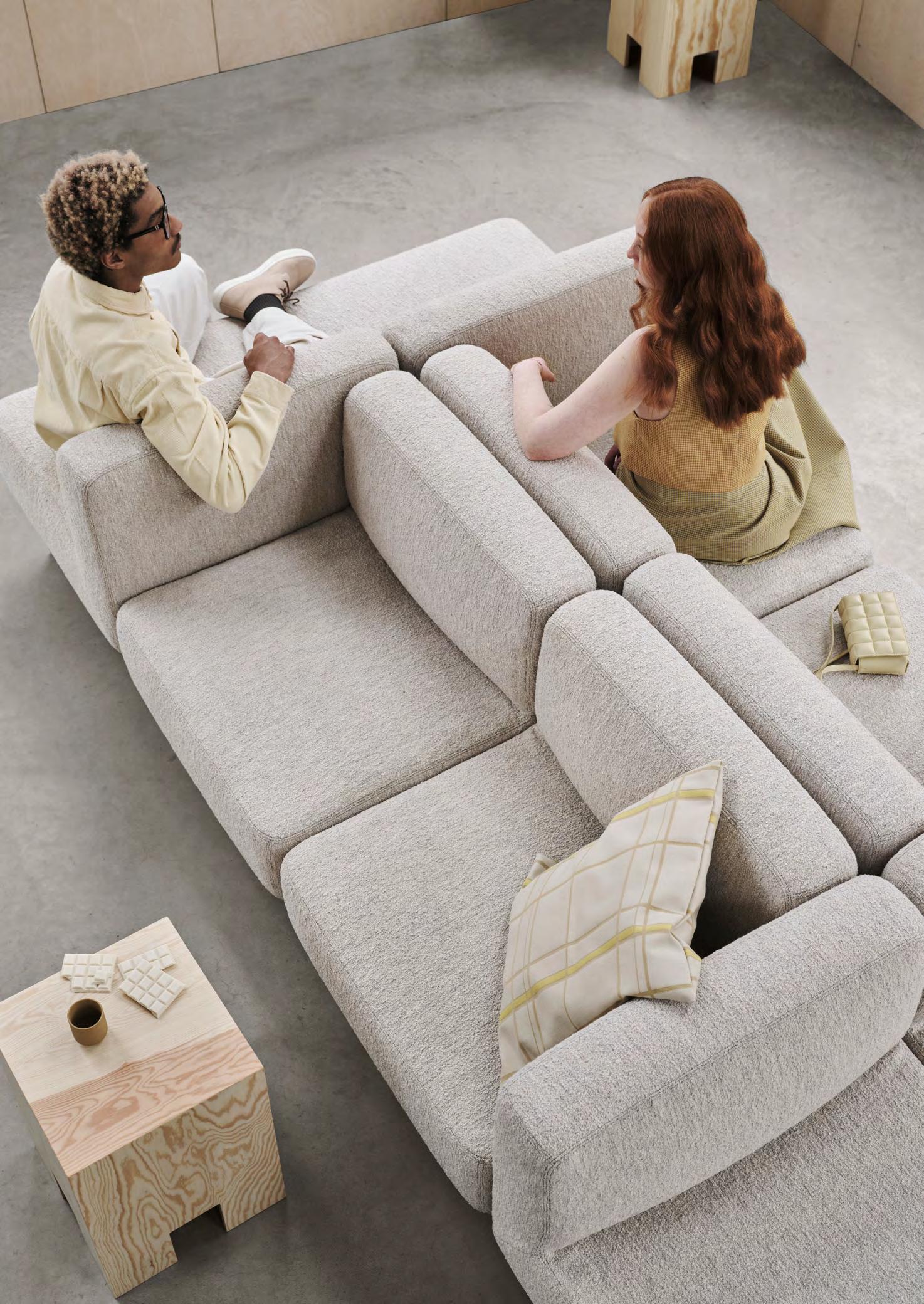 The backrest has been perfected by Borselius and Bernstrand since the introduction in 2020 so that the BOB family’s younger brother is now a little more grown up. Still as boisterous as before, Bobby can easily assemble himself into a slender sofa in tight spaces, but might immediately disengage himself to gather around tables or to stand all by himself. Bobby will snap together thanks to strong magnets, and will endow whatever space with a concise graphic profile. The Bobban pouf allows for perpendicular configurations, as well as a use as sideboard and divider, or why not as a freestanding ottoman aka table? Bobby’s depth is a mere 63 centimeters compared to the bigger brother Bob’s 87 centimeters, and forms soft comfortable sofas with a seatheight of 46 centimeters perfect for narrow or restricted areas.