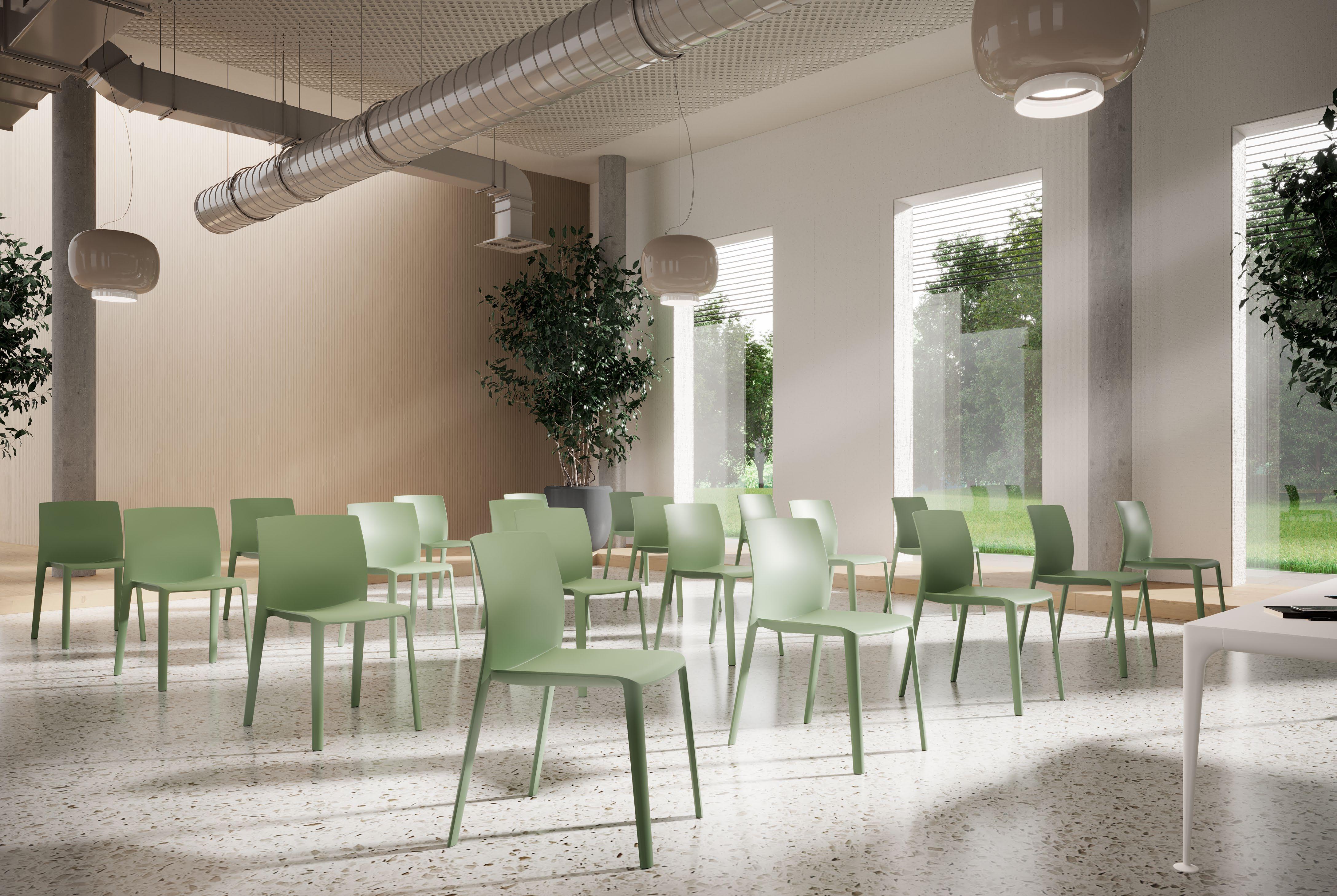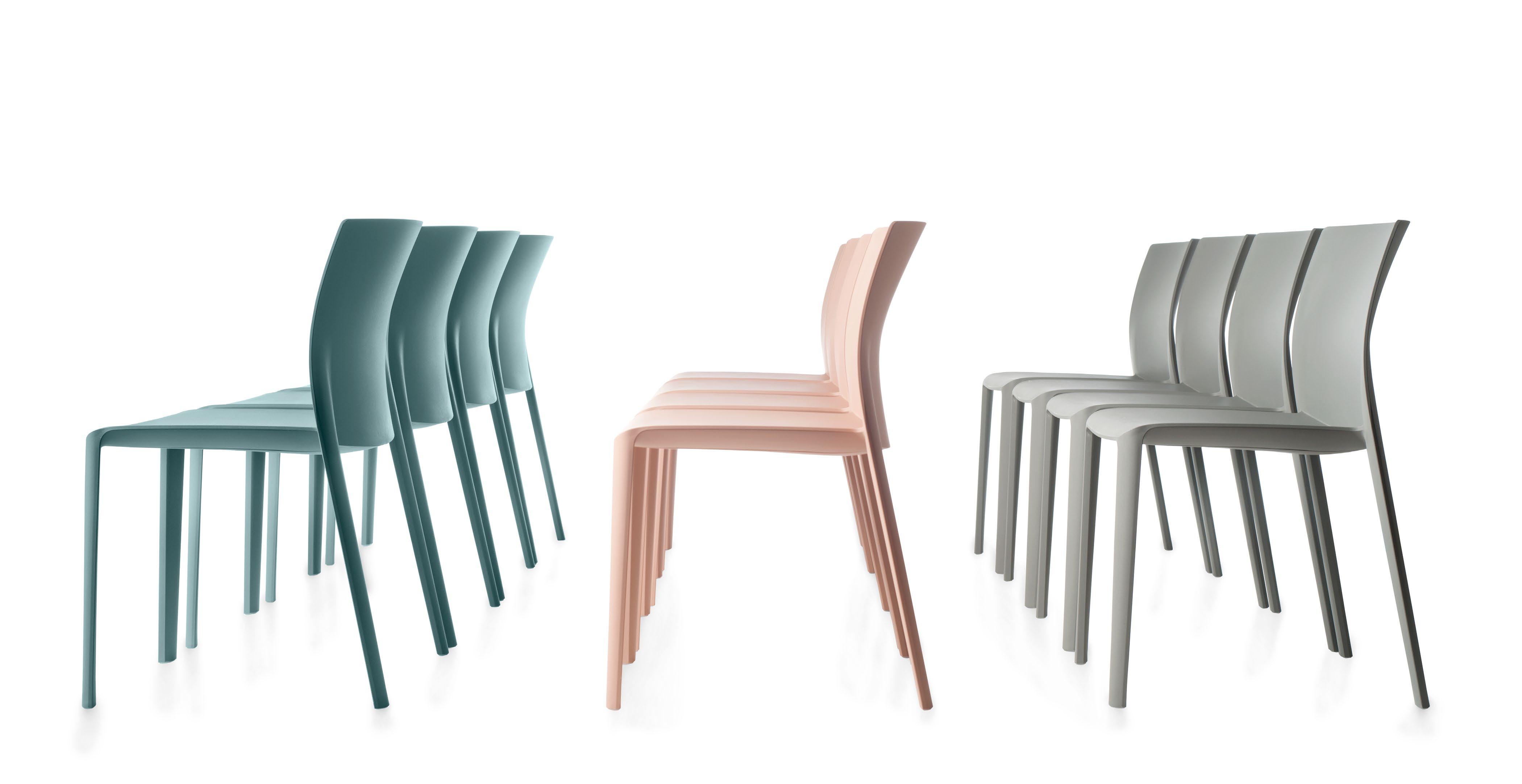 Stapelbarer Monoblockstuhl aus glasfaserverstärktem Polypropylen, hergestellt im Einspritzverfahren in “AirMoulding” Technologie. In den Farben: