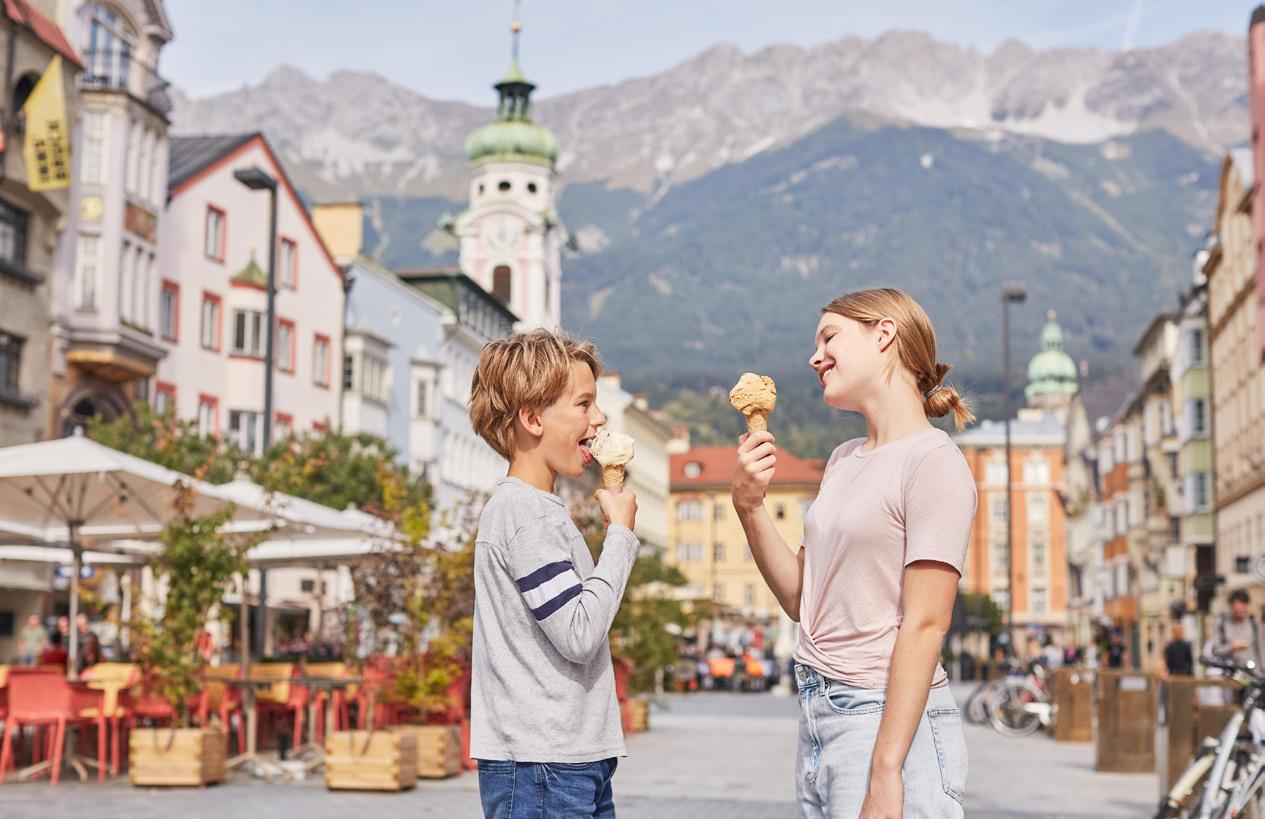 Avisit to the capital is also part of a perfect vacation in Tyrol. Easily accessible by public transport, Innsbruck offers all kinds of sights, history and delights: from the Golden Roof to a glass of wine over the rooftops of the city – a trip to Innsbruck is worthwhile in any weather. The city has a lot to offer: the best starting point for a tour is the historical old town – which was already an urban center under Emperor Maximilian I more than 500 years ago. Back then, it served as a box seat for knights' tournaments. Today, guests can grab a ”box seat“ in the charming street cafés and watch the hustle and bustle in the pleasant alleyways from there. Speaking of watching: Visitors to the city tower have the best view of the Golden Roof with its 2,657 fire-gilded copper shingles, the roofs of the old town and the surrounding mountains. A total of 133 steps have to be climbed to enjoy the breathtaking panorama from the 31-metre-high viewing platform – but every step is worth it!