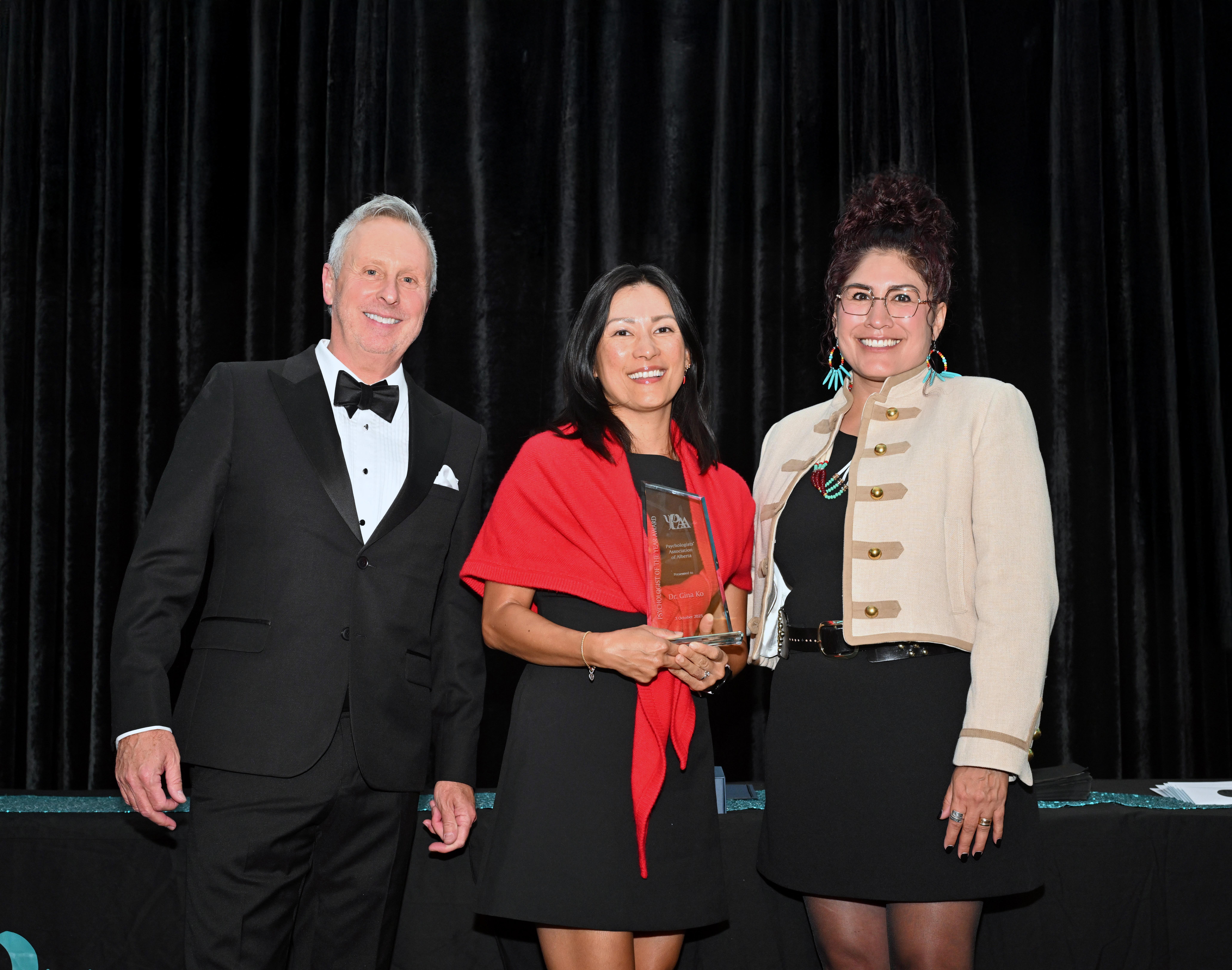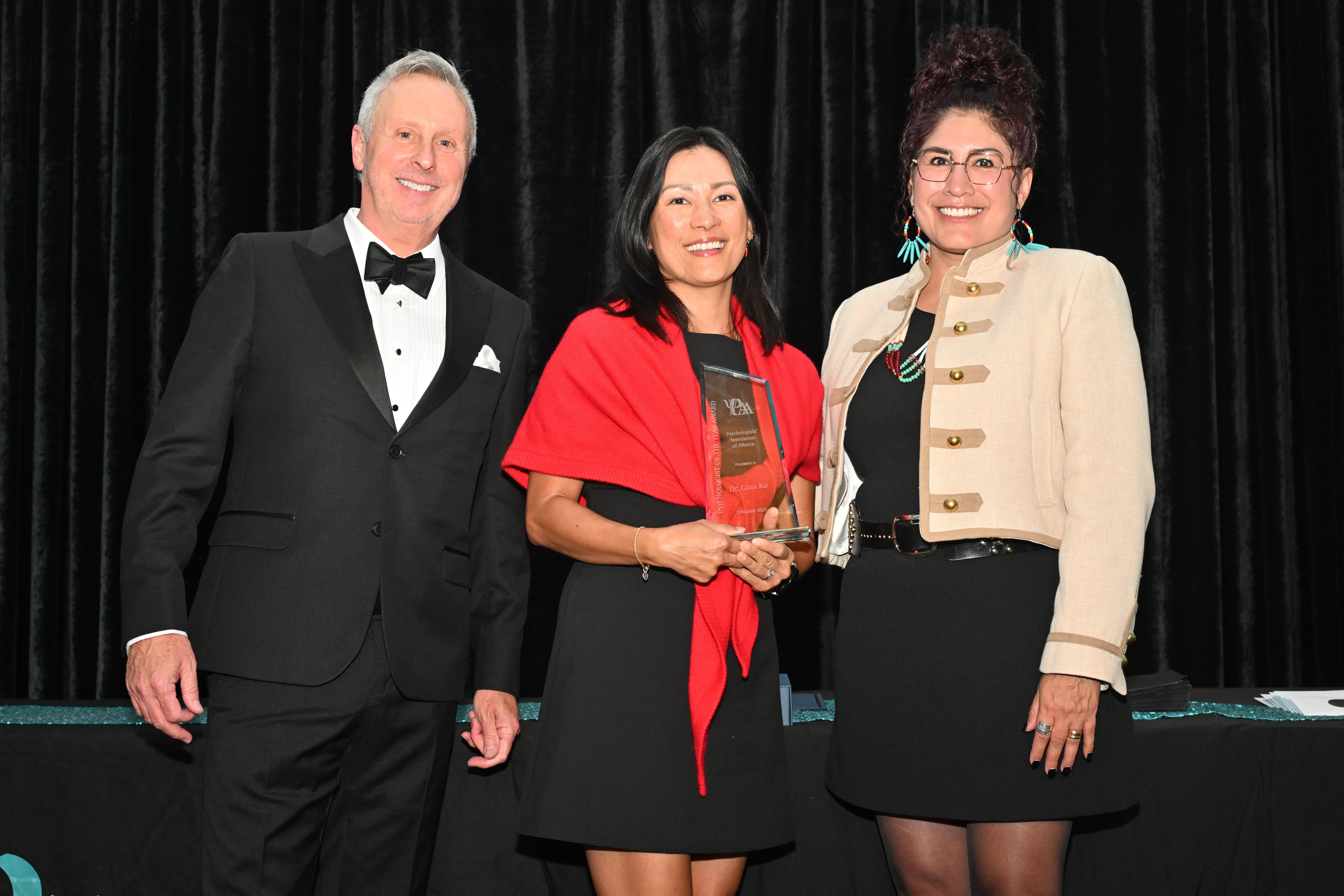 PAA’s Psychologist of the Year, Dr. Gina Ko, accepting her award next to Dr. Bill Hanson and Dr. Quintina Bearchief-Adolpho.