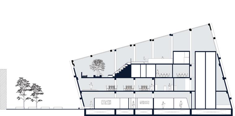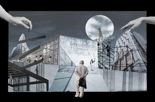 先描繪再打破,最後進行結合,重構出能讓人群活動的場域, 使不同的人在此匯聚和互動,形成過渡裡和外的交界處