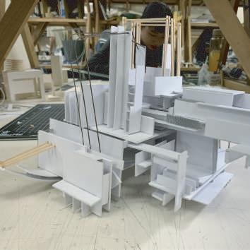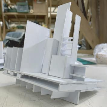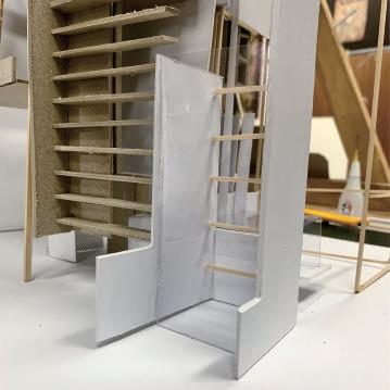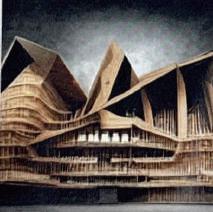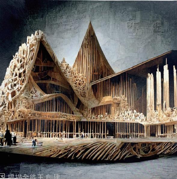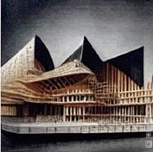 在這片充滿陰鬱氣息的空地中,矗立著一棟高聳的歌劇院, 讓人感到十分陰暗及畏懼,整體構成以木頭為主,