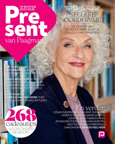 Die wereld van verbinding, verbeelding en vrijheid lees je terug in deze negende editie van Present van Paagman. Met Nelleke Noordervliet op de cover –die in Het bewind van de gelukkigen de lezer uitnodigt tot reflectie (p. 12) – maar ook in het gesprek met Ahmed Aboutaleb over verbondenheid (p. 78). We gingen in gesprek met Susan Smit over vrouwen (p. 34), Jean-Pierre Geelen schrijft over 25 jaar literair landschap (p. 72) en Barend Last over de toekomst van schrijven in een tijdperk van AI (p. 46). Jip van den Toorn fileert de actualiteit in beelden (p. 70), John de Wolf vertelt over zijn moeder met Alzheimer (p. 96), en we duiken in thema’s variërend van Surinaamse literatuur (p. 84) tot youngadultlezers (p. 20) en de kracht van vriendschap (p. 106).