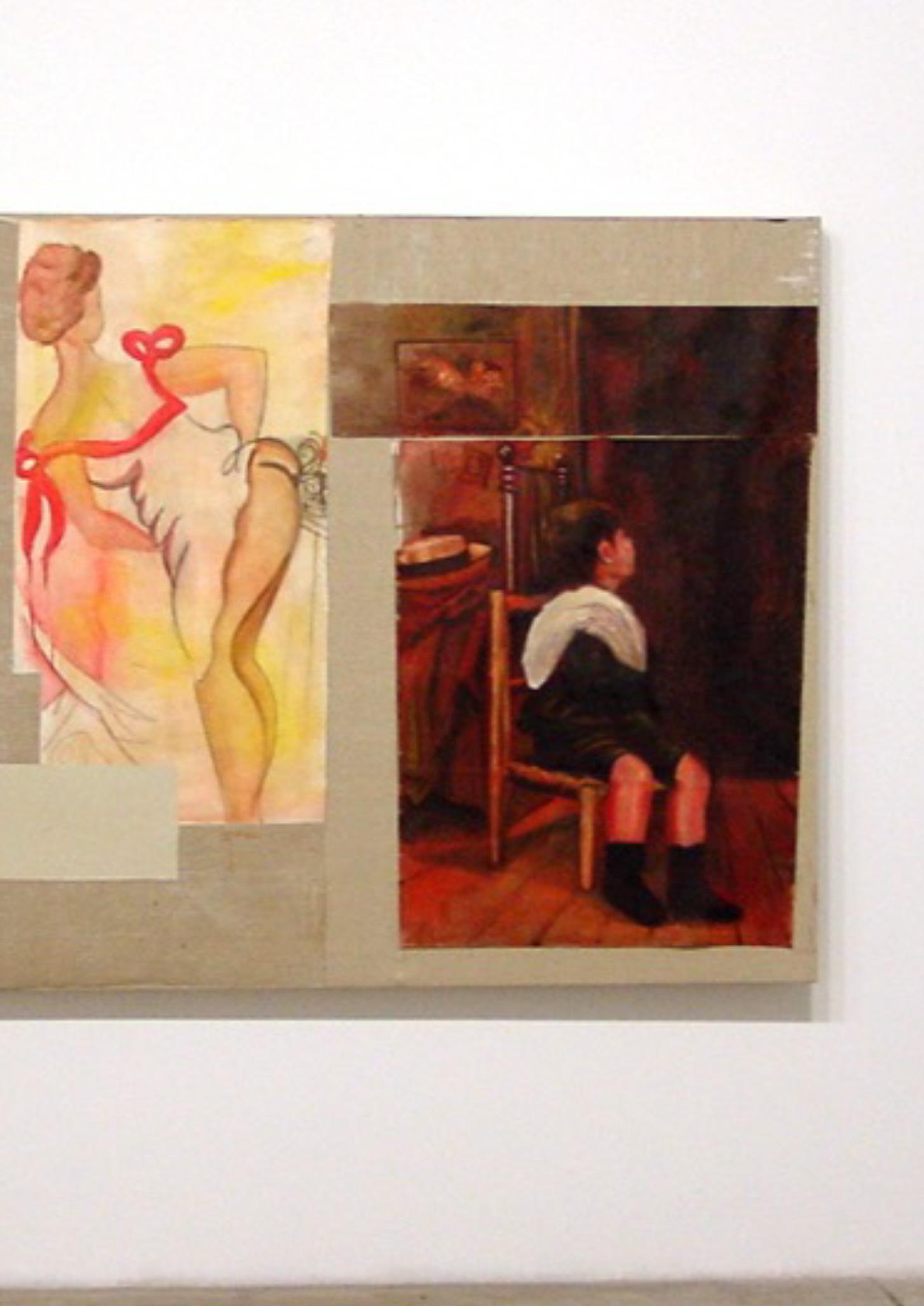 El pintor, el idealista muerto., la señorita y el niño. Óloeo sobtre tela, acuarela sobre tela.