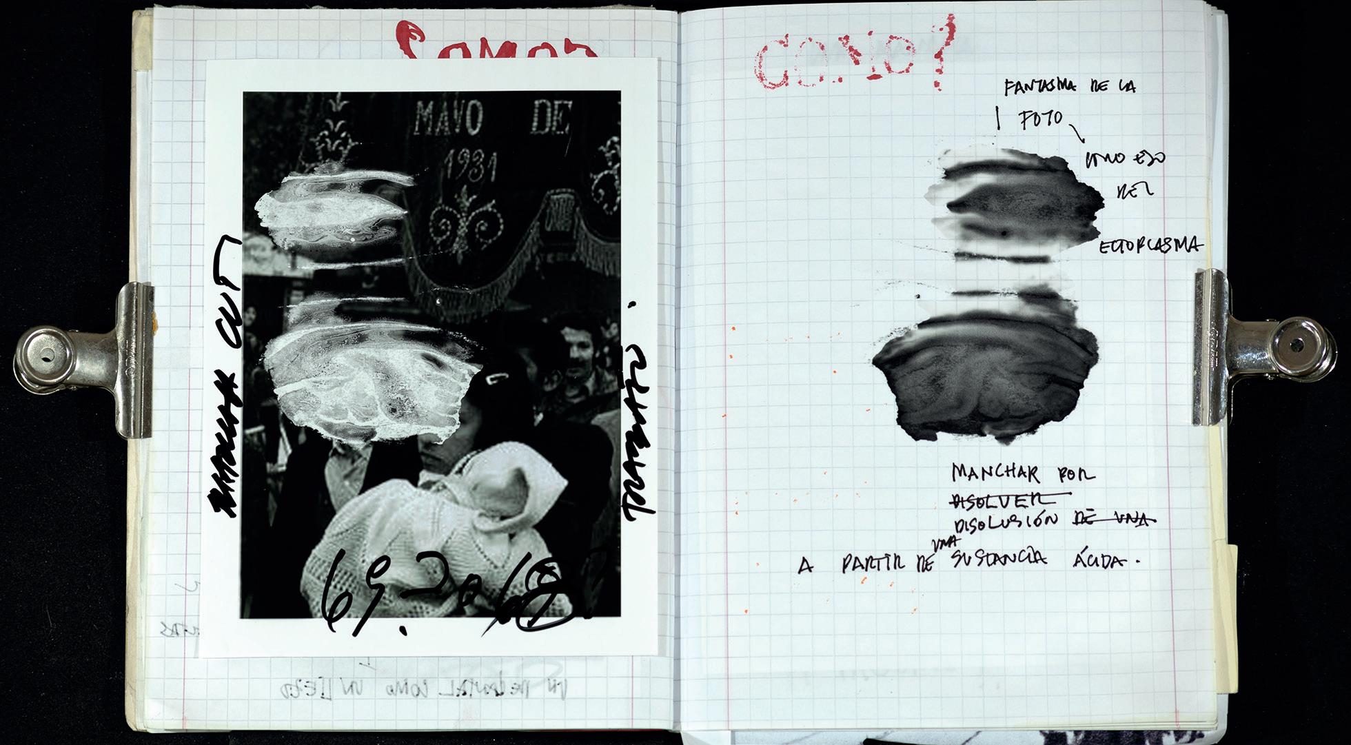 Este documento (provisional) presenta una selección del primero de los 4 cuadernos de mayo que registran los dibujos, fotografías, pesquisas, disquisiciones y anotaciones, citas, textos o notas marginales o simples impresiones. Tres de los cuadernos corresponden a los clásicos cuadernos escolares ocupados en chile. El cuarto cuaderno corresponde a un formato más pequeño.