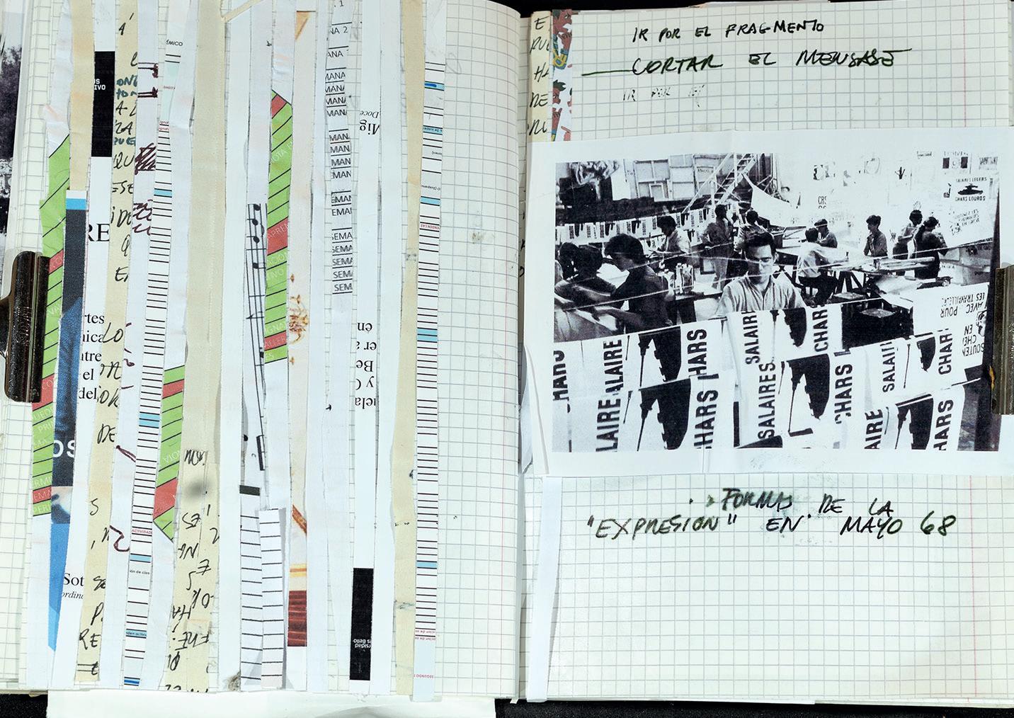 En ellos se fueron pegando fotografías, dibujos e incluso textos escritos en el computador personal e impresos en hojas ajustadas en tamaño para coincidir a duras penas con el cuaderno.