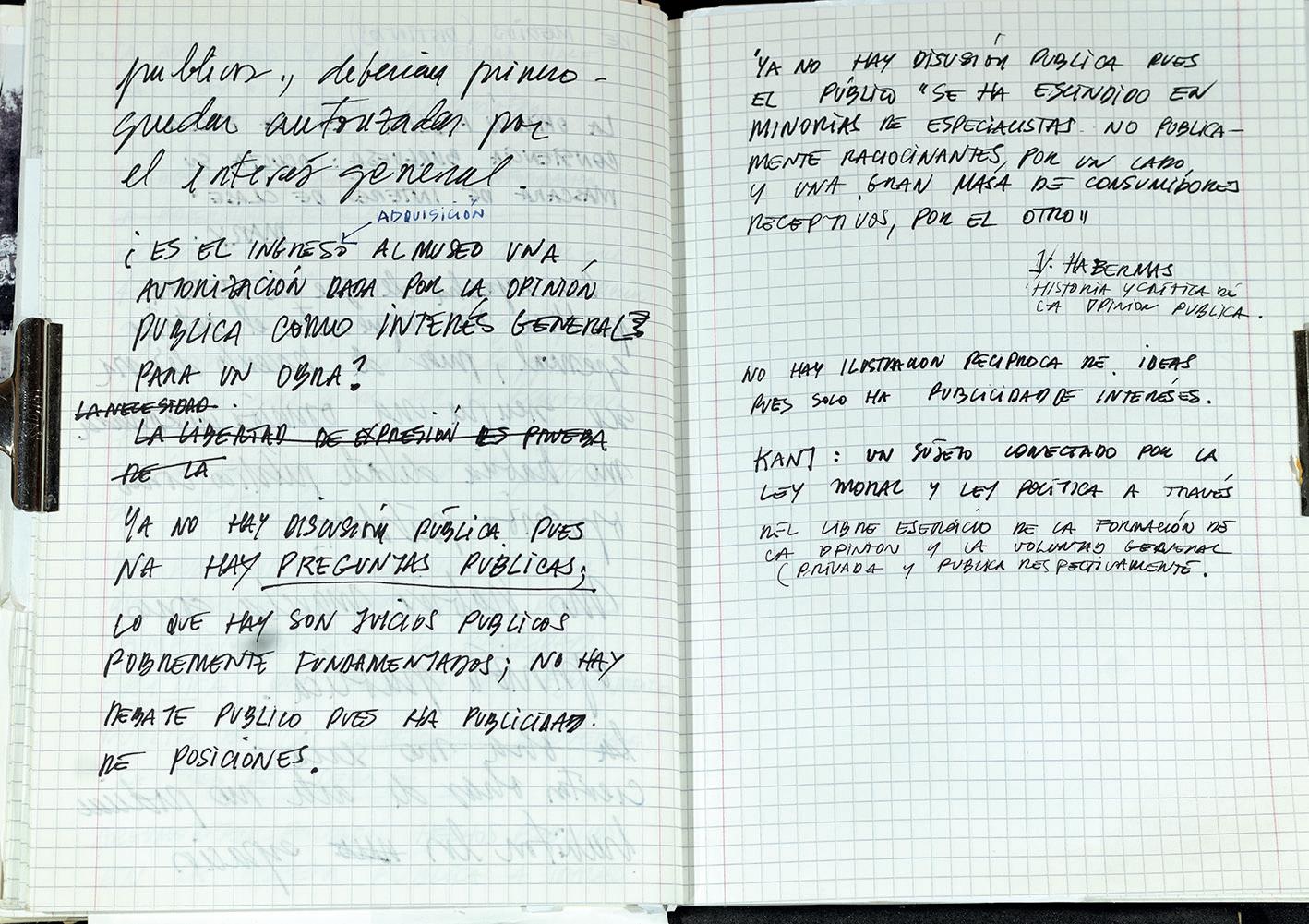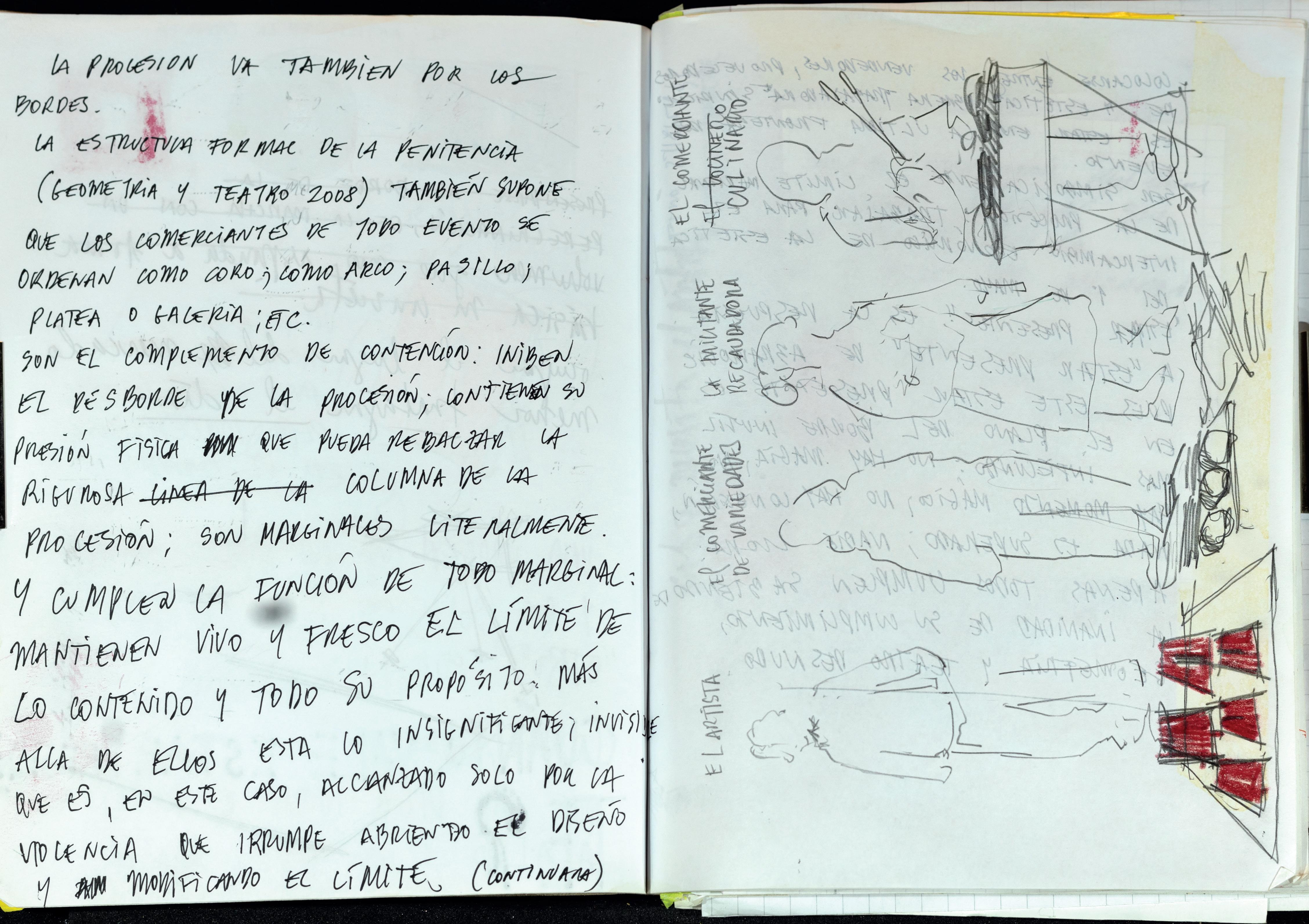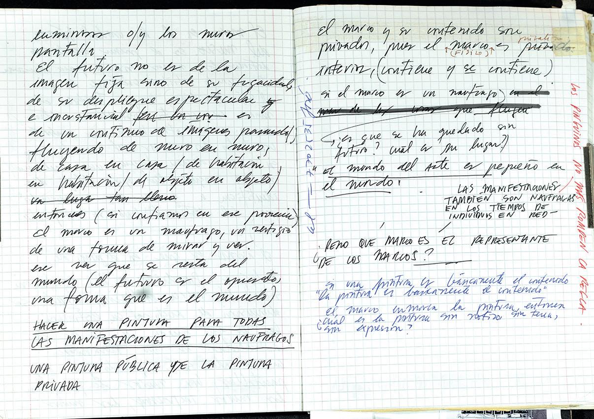 Así los cuadernos fueron tomando un tono urgente y callejero, como si la obra se fuese extendiendo al lugar donde se le anota e imagina.