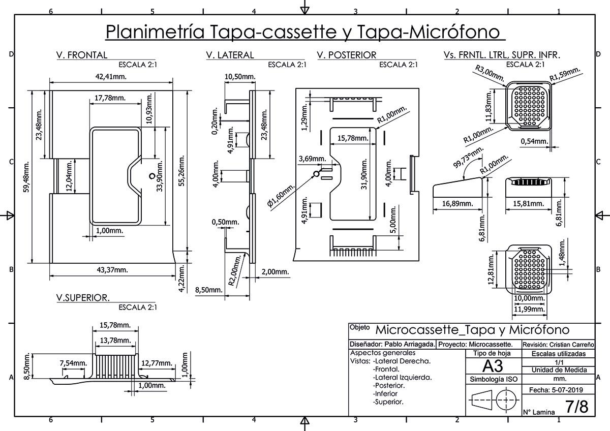 El Microcasse�e fue una herramienta necesaria en su época, cuya función era grabar audio, por ello, es necesario comprender su forma y el nivel a detalle de la comprensión de sus piezas que fueron des�nadas a su desarrollo.