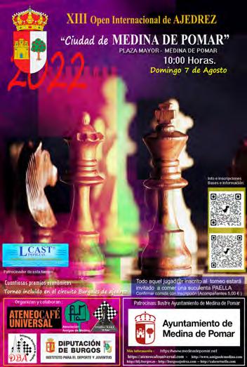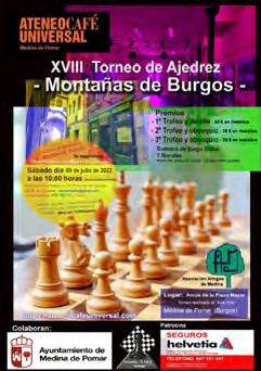 Después de superados los tiempos pandémicos que hemos padecido, el ATENEO CAFÉ UNIVERSAL, La Asociación Ami gos de Medina y el Ortuellako Xake Kluba “El Peón” , de la mano de la Delegación Burgalesa de Ajedrez y también a su vez el Instituto de Juventud y deportes de Burgos, han or ganizado el pasado domingo día 07/08/2022 una ejemplar edición (XIII) de este consolidado torneo de ajedrez con tando por supuesto y como no podía ser de otra manera con la colaboración del Ayto. de Medina , y con el patrocinio privado (al igual que el año pasado) de la empresa L-CAST.