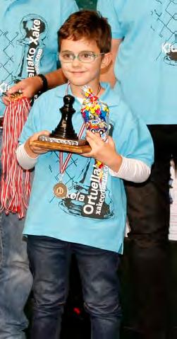 en la Final Infantil, fue Edorta Pontón, que se enfrentó en dos duras jornadas y a lo más grande del ajedrez vizcaíno de su Edortacategoría.aúnnologrando un gran resultado final, disfrutó de la experiencia de haber recorrido un duro camino hasta esta final y de las duras partidas que disputó.
