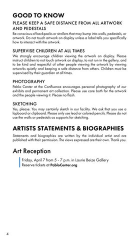 Friday, April 7 from 5 - 7 p.m. in Laurie Beize Gallery Reserve tickets at PabloCenter.org