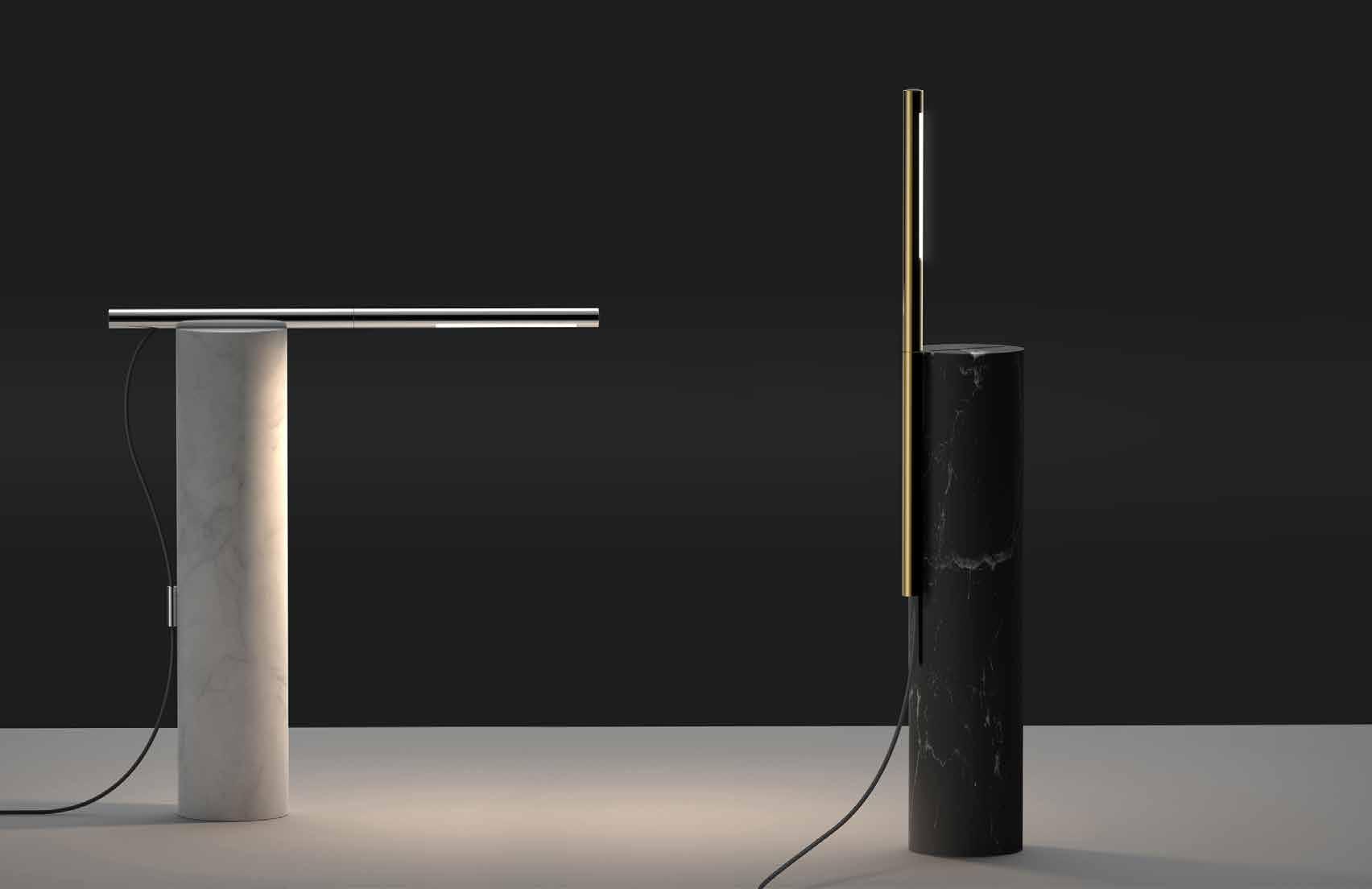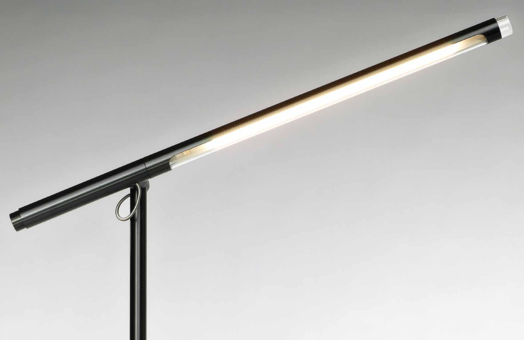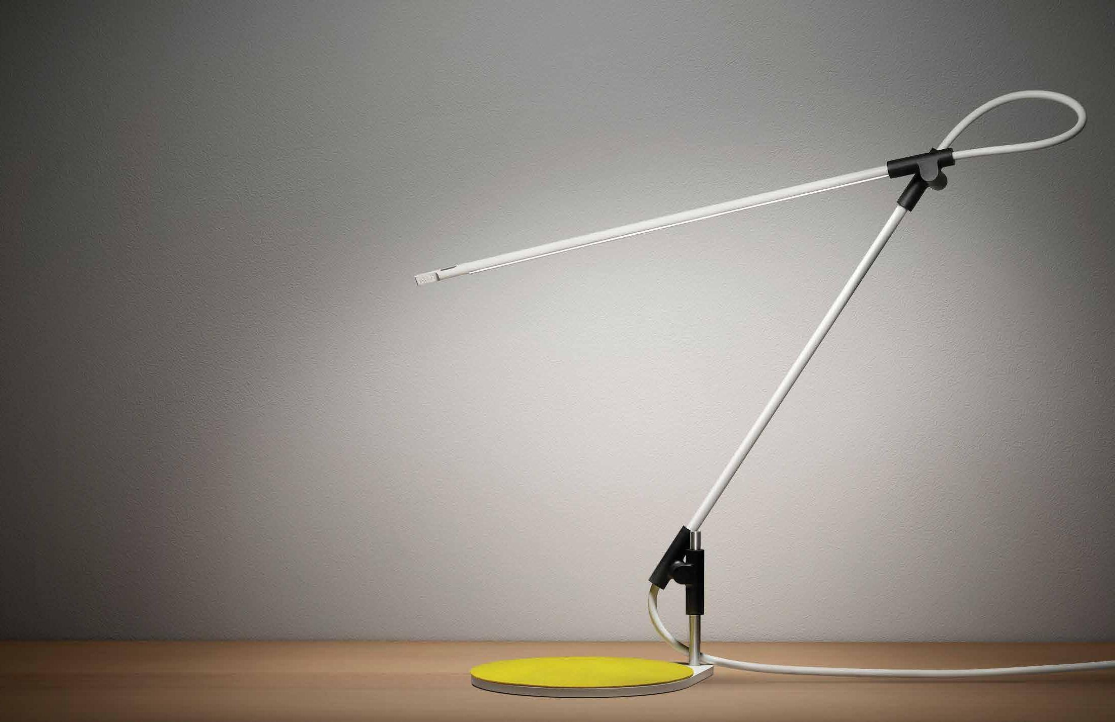 Fusing breakthrough LED technology with a uniquely tactile and calibrated light control experience, Brazo is an intelligent, precise and effortlessly adjustable task lamp. A user can tune it to any beam spread, brightness and direction, controlling the volume and focus of light. The aluminum shade on the lamp’s arm enables much of this adjustability, enabling the user to fluidly dial it around the light source to guide the beam in any direction. Although suitable for any environment, the versatility and 360° adjustability offered in its minimal frame makes Brazo ideal for use in work environments. Brazo transforms from table to floor model with a simple extension post and ships flat-packed for easy transport.