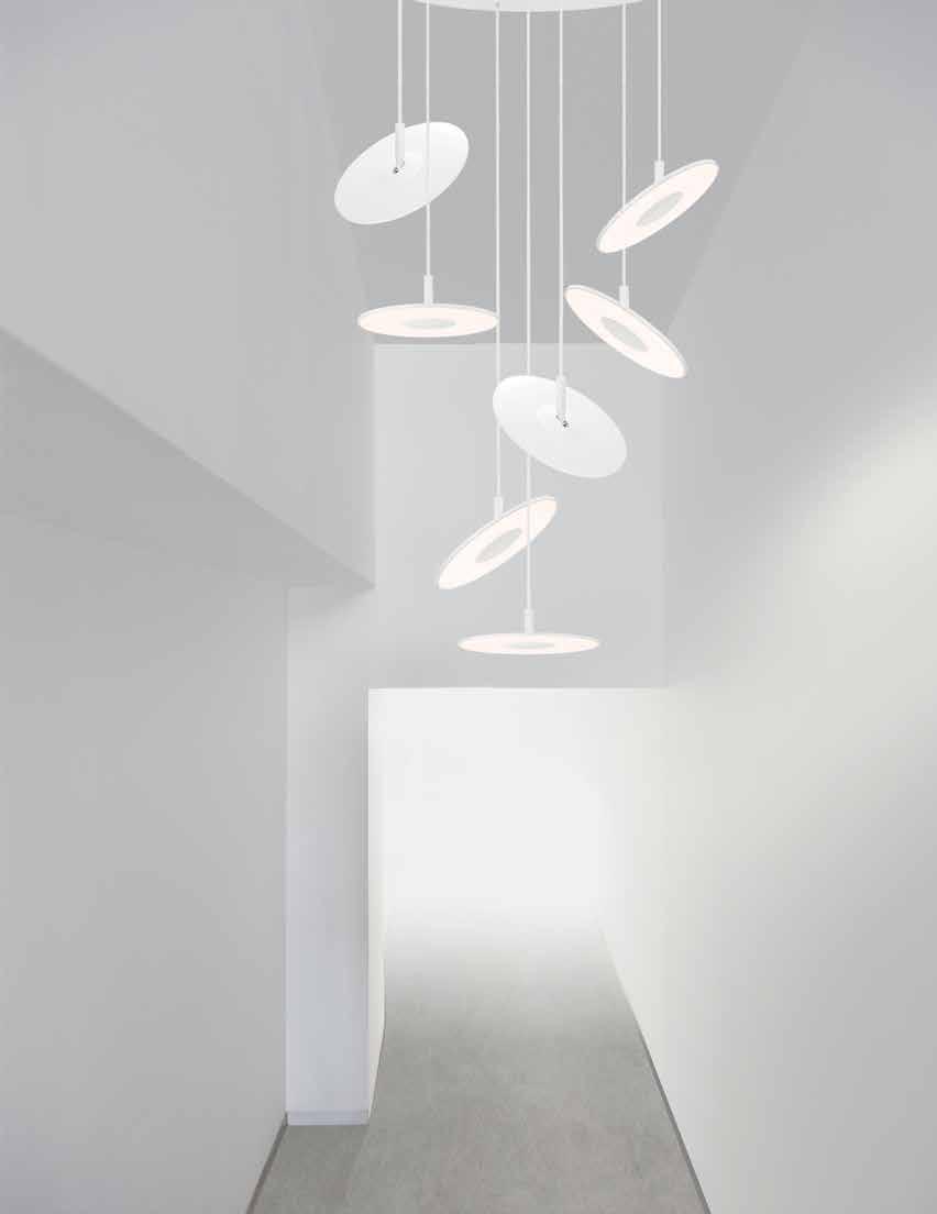 Circa’s revolutionary flat-panel LED light source combines seamless movement with warm and balanced illumination. Through its 45° shade tilt and 360° rotation, Circa redefines the ambient lighting category. Circa Chandelier is available in 3, 5, and 7 lamp configurations to fit a wide range of commercial and residential environments.