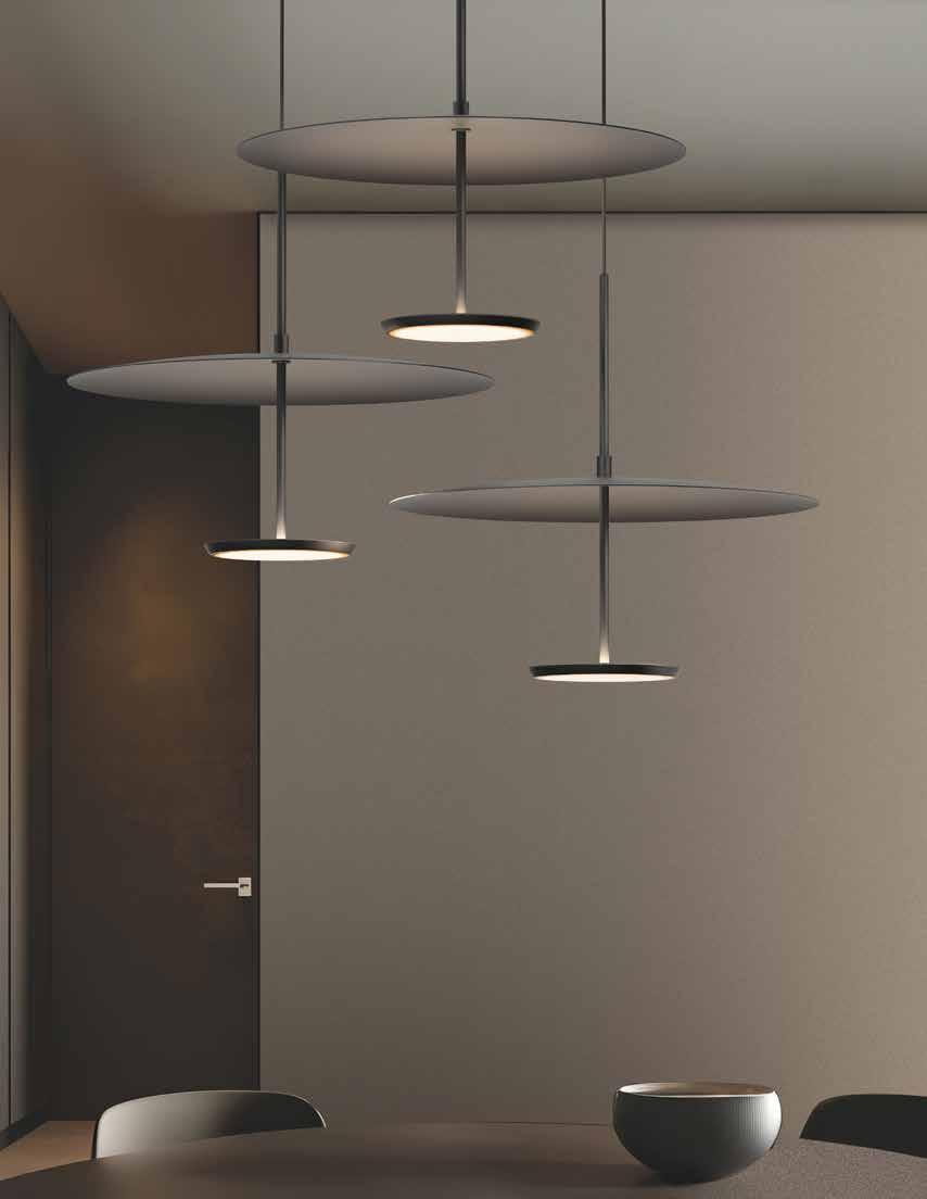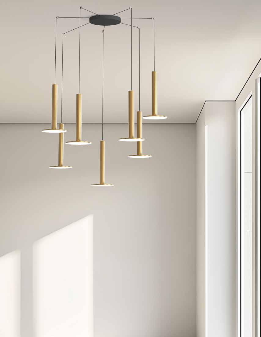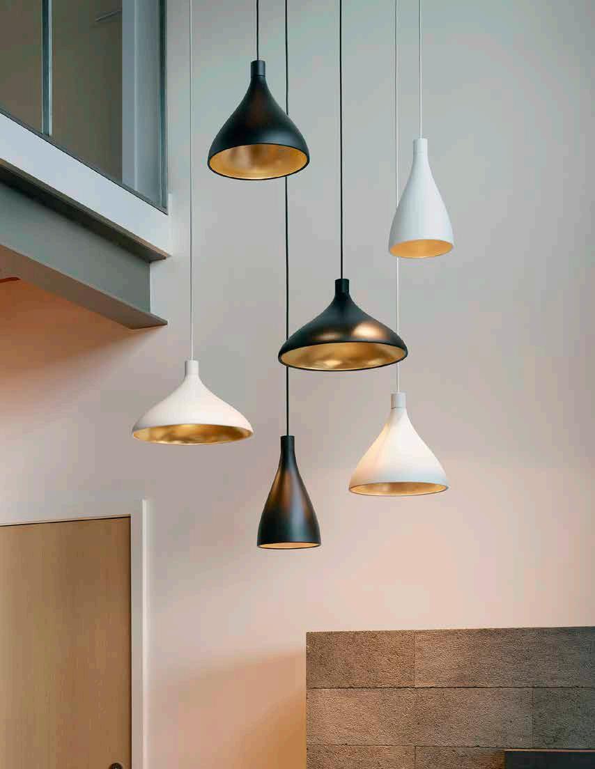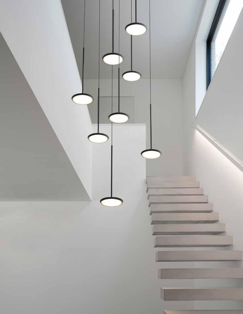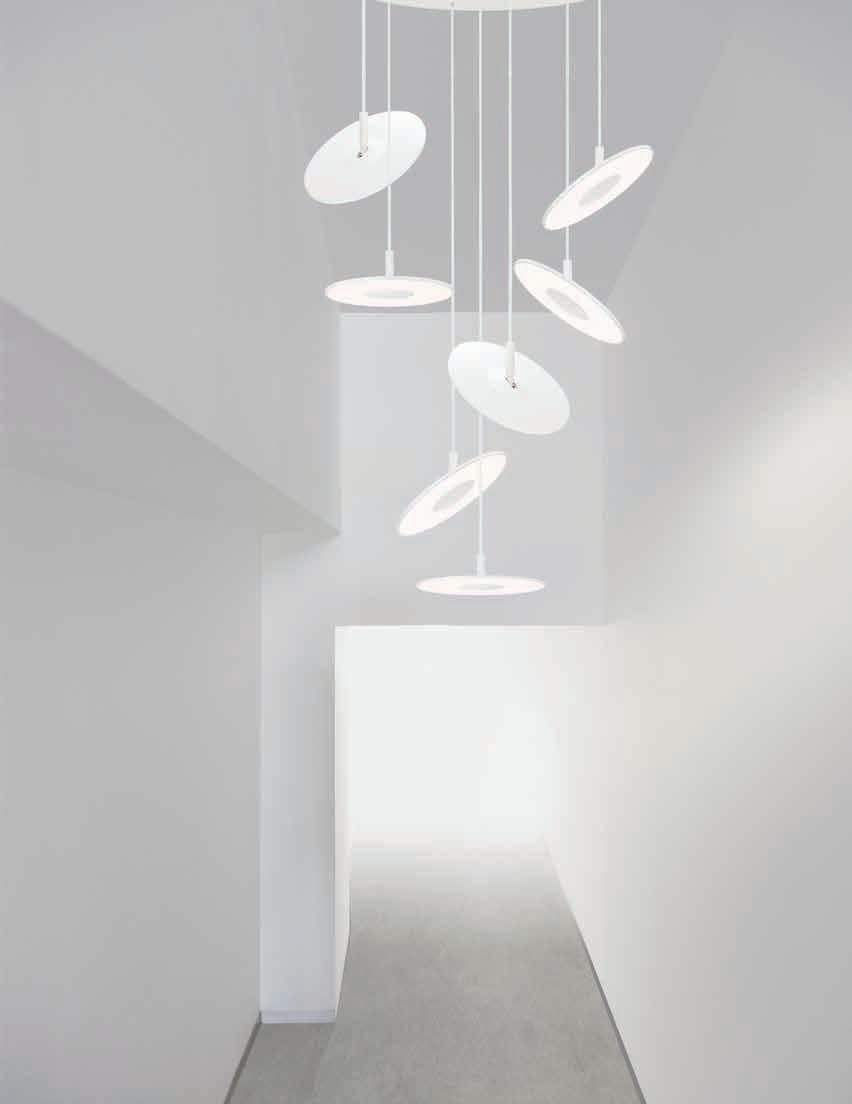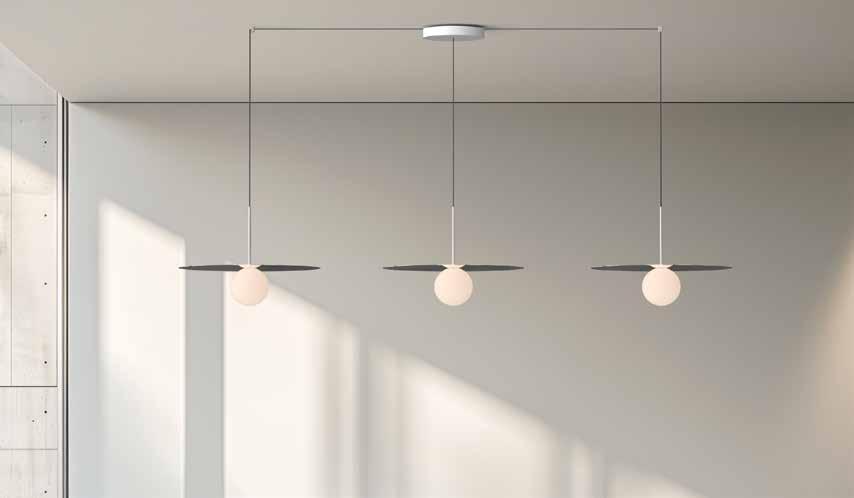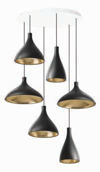 Bola’s elegant reflective disc and globe design can be suspended in a variety of custom arrangements in both round and linear configurations. With Bola Disc Multi-Light, up to 11 lamps can be grouped together in a variety of mixed disc sizes to form stunning luminaire displays. Both size and shape of the grouping is controlled by lamp quantity and positioning relative to the Multi-Light canopy. Swag mounts are provided to extend the lights out into space along with an ample cord length of 8.9’ (2.7m) to offer a wide array of unique solutions.