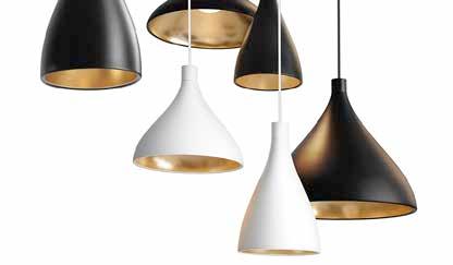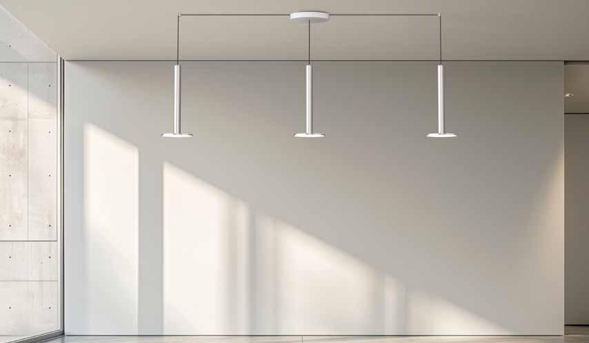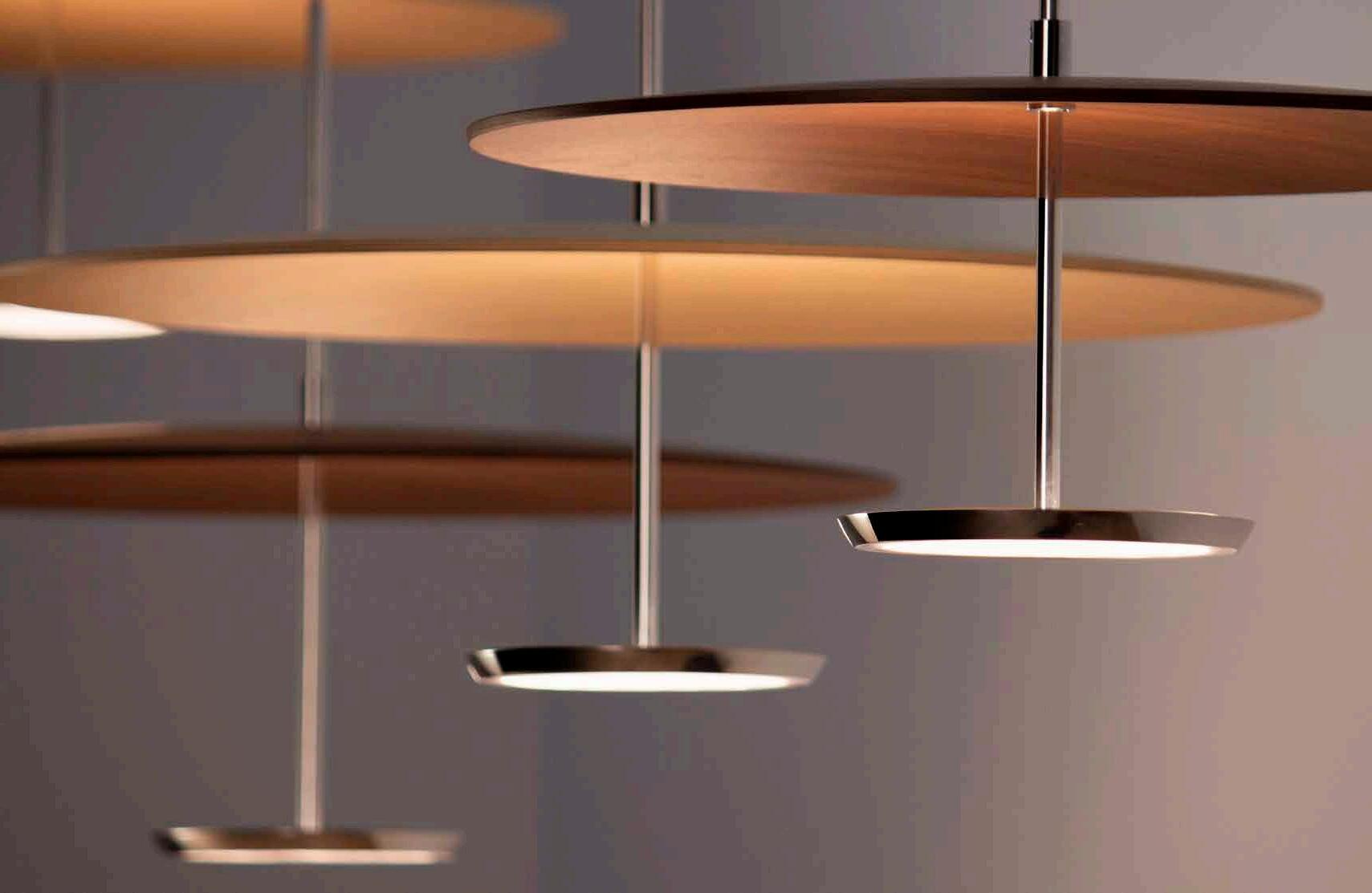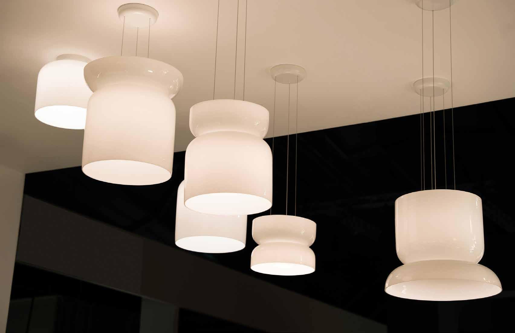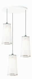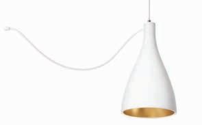 Bel Occhio lamps are outfitted with a braided silver power cable, pendant lamps are paired with a white canopy.