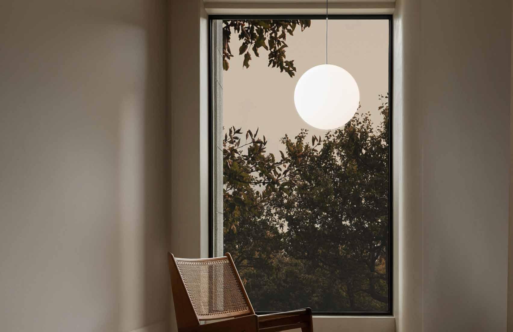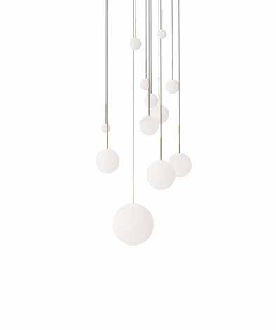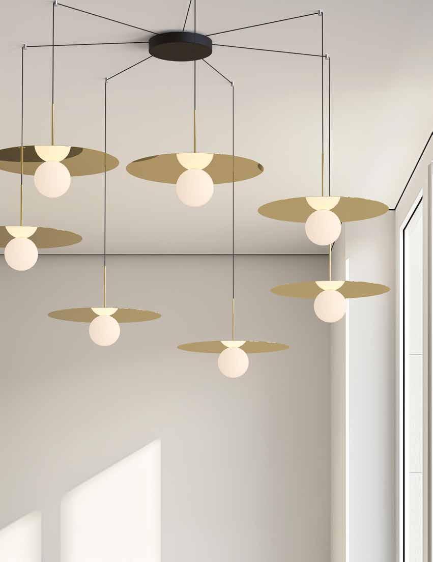 Bola Disc is a uniquely expressive LED Lighting system featuring a distinctive range of chromated disc reflectors that give the illusion of weightlessness by mirroring its surroundings. Bola Disc pairs an elegant globe diffusor made of opaline glass with exquisitely polished stainless steel or aluminum discs in chrome, brass, rose gold, gunmetal, matte white, and matte black to appease the most discerning tastes. Dependent on size, Bola provides up to 1625 lumens of warm ambient light and is fully dimmable, providing unparalleled illumination. Bola can be suspended individually, in series, or as striking chandelier groupings for residential, contract, and hospitality settings alike.