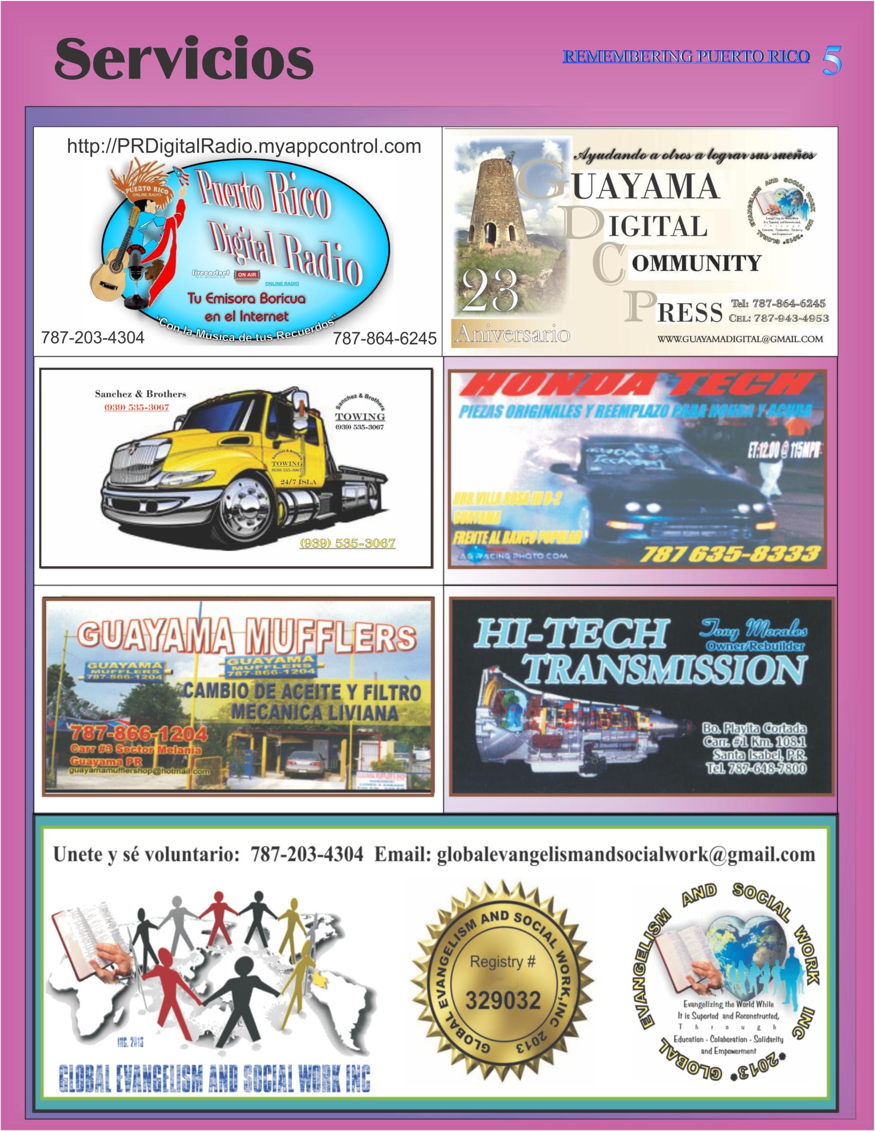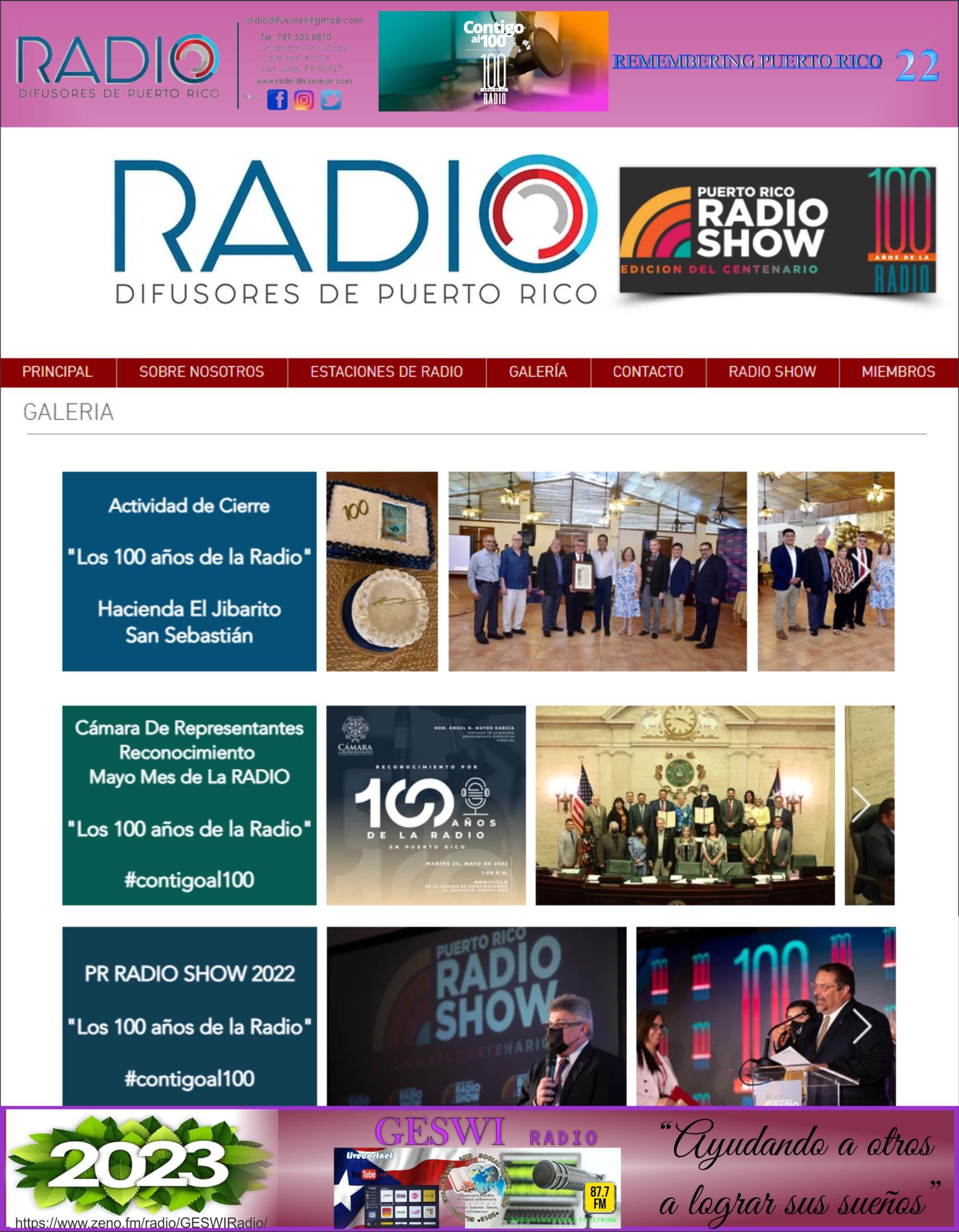 Recordando a Puerto Rico es una publicación digital producida por GESWI Publications, una división de Global Evangelism and Social Work Inc., GESWI, una organización sin fines de lucro registrada en el Departamento de Estado de Puerto Rico, USA el 13 de agosto, 2013 con su número de Registro #329032.