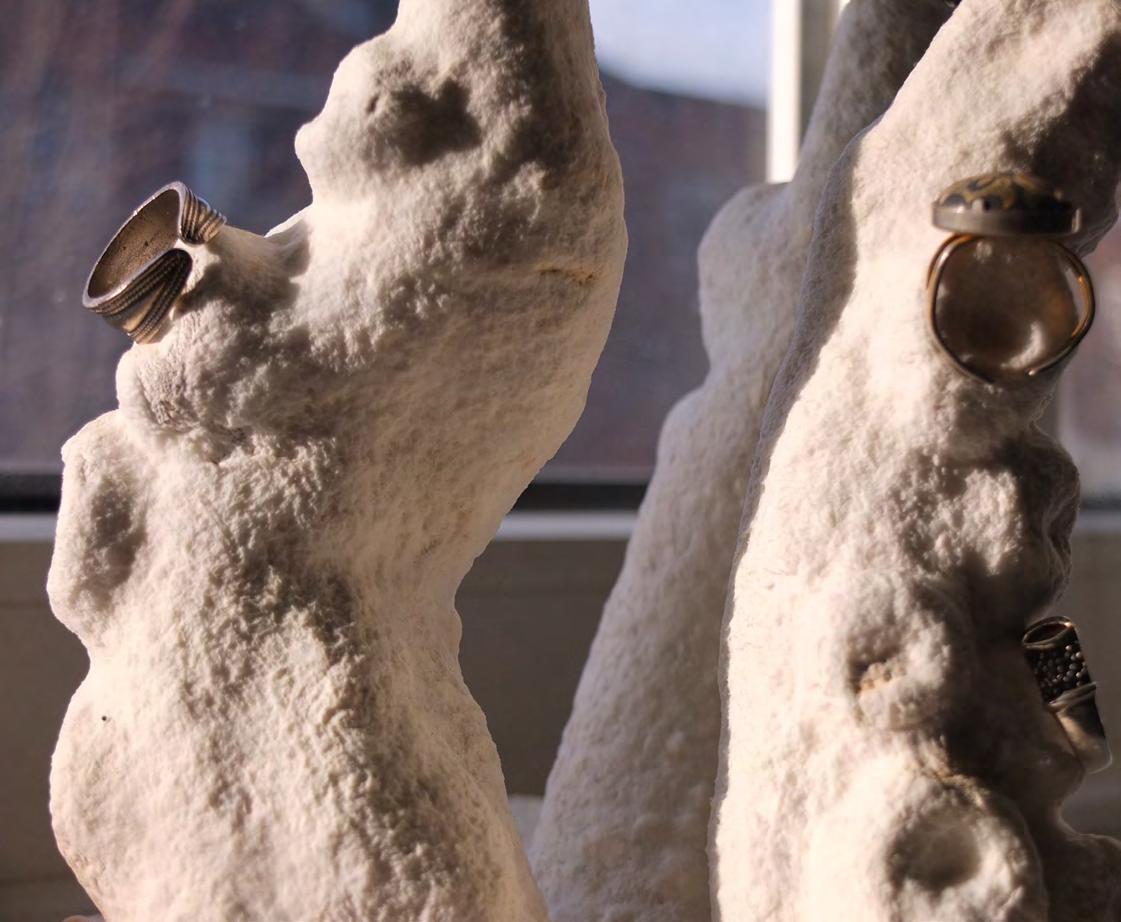 Mycelium has been gaining popularity as a sustainable alternative for building materials. To explore its potential, I set out to create a product that would allow me to study its growth process and durability under regular use. For this experiment, I chose to design a jewellery holder. The piece features organic shapes, pushing the material’s limits and testing its structural and aesthetic potential.