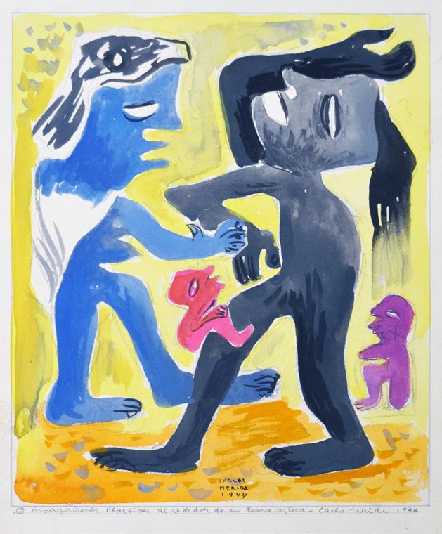 This exhibition is an aesthetic adventure and the dictionary of a life of creating. I hope the joint effort of those who took part, with their experiences and work, their suggestions and loans, helps to discover both the human side and the oeuvre of this extraordinary artist and the scope of his achievements. We want to give special thanks to Cristina Navas Mérida for her invaluable support, trust, suggestions and works of art, as also her unyielding effort to enhance and aggrandize the knowledge and the works of her beloved grandfather: Carlos Mérida. To the curatorial team of the Museo Nacional de Arte (MUNAL) and especially to María Estela (Tely) Duarte and to the Pablo Goebel Fine Arts Gallery team that, like always, put their greatest effort in making such an important exhibition possible. To the collectors who preferred to remain in anonymity we give them our deepest thanks for the generous loans and trust. We will all remain attentive spectators to Carlos Mérida.