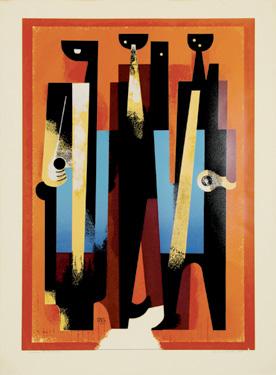 Mérida’s intellectual search for harmony comes back in his balanced use of color, composition and the aim to truly integrate his murals in architectural constructions. The young Mérida had the desire to be a musician, yet due to partial deafness suffered during his youth, the artist would opt to further develop himself in the visual arts. Through his art, Mérida wanted to transmit the poetic essence of jazz and classical music, composing music through form and color. The artist distilled this idea during the late 1940s and 1950s when he developed a new type of abstraction. Influenced by the geometric abstraction he saw in Paris, his indigenous cultural heritage and music consolidated in what is now considered as Mérida’s mature style. The works produced during this period and later on, embody his idea of purity and harmony, with form, color and music as intrinsic parts of his works – resulting in everlasting rhythms for the eyes to see.