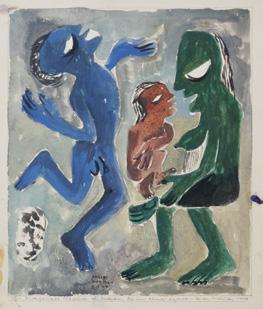 El encantador de los pájaros, 1980 Petroplástico sobre papel amate