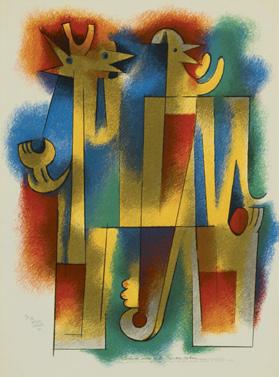 Carlos Mérida’s persona does not permit us to limit him. One has to see the many different types of work he was involved in, all of which played an important part in his development: his work as a costume and stage designer, and as a promoter of dance; he also worked in journalism, as an art critic; he worked with stained glass, ceramics, enamel, sculpture, jewelry; he was an illustrator for several publications; he was an investigator and innovator in techniques; he was also a muralist, and this work forms an important part of his legacy, given his achievement in integrating architectural art with painting, and all this together turned Carlos Mérida into a rebel visionary, an experimenter, a searcher, someone who was passionate about color, who was obsessed with form and space, and who discovered his own style.