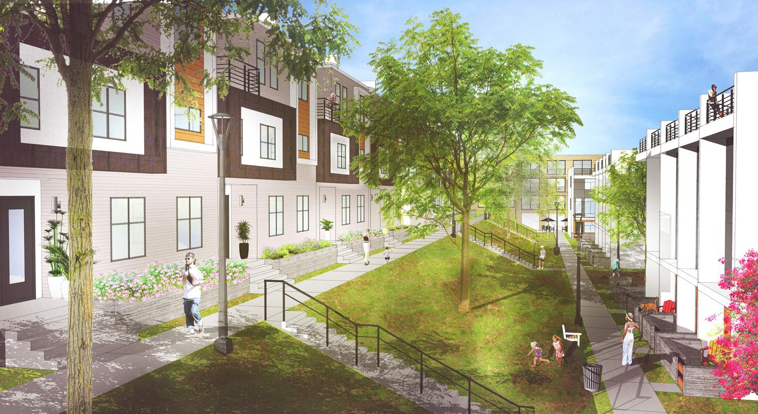 The full build-out will produce 222 for-sale units, averaging around 2,146 square feet per unit. Parking will be included for 485 vehicles, including 32 guest spots. In addition 33 units will be affordable to moderate-income households.