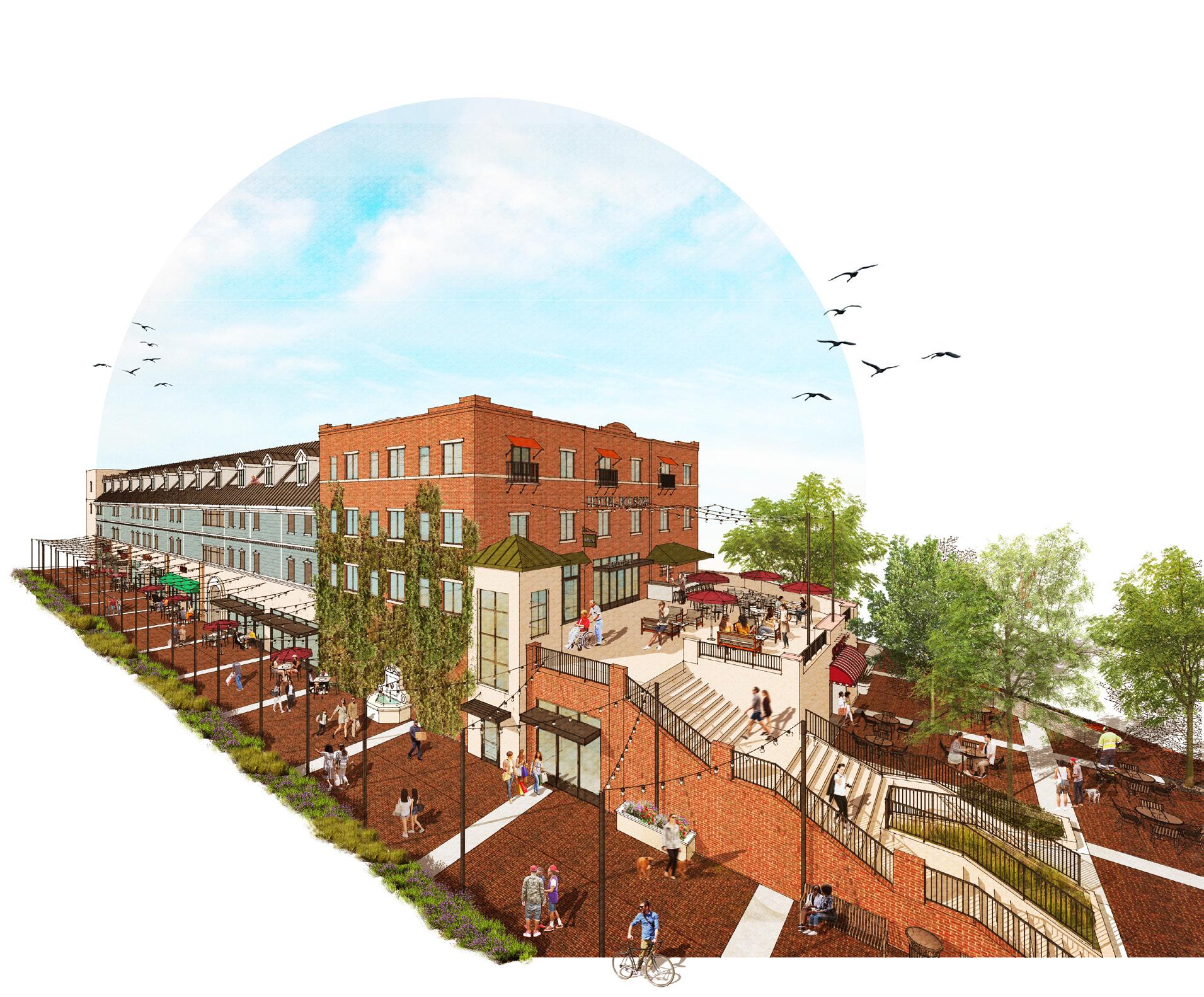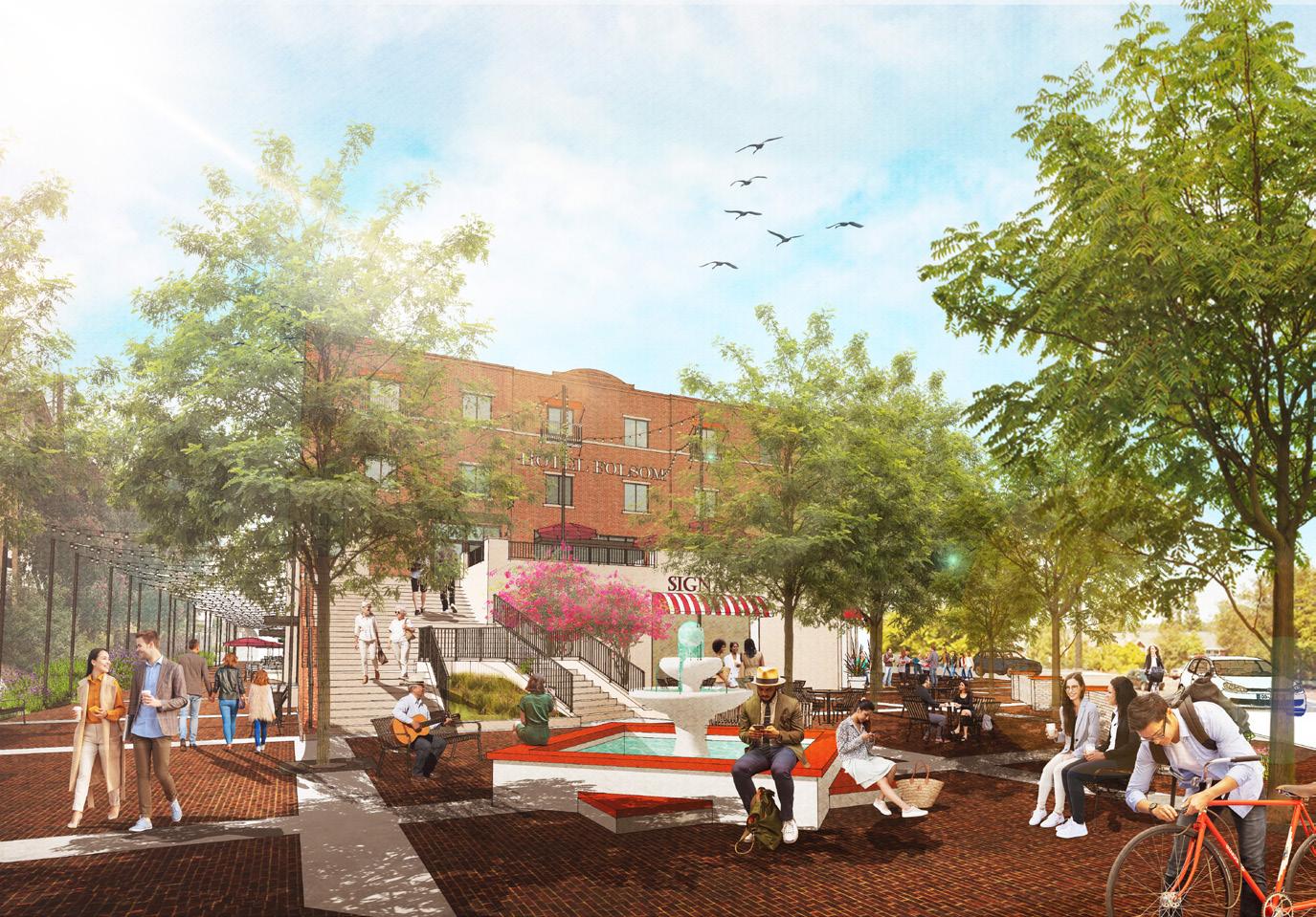 The Folsom River District Revitalization is a masterplan to reconnect people to the Folsom river by increasing public spaces through economic development and recreation opportunities. Some objectives include providing city gateway enhancements, commit to high quality design,and enhance Folsom's heritage. RRM Design executed a feasibilty study of an opportunity site to design a a boutique hotel with a plaza and retail opportunities along Traders Lane.