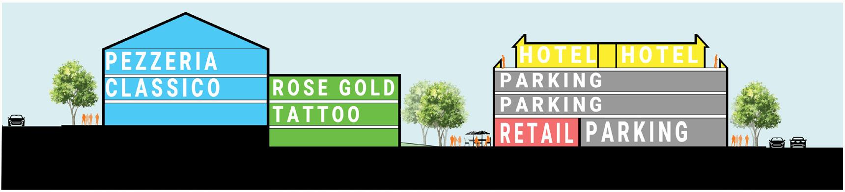 As this project is anticipated to advance key economic development goals, it also implements important housing element policies that reflect the City’s updated Development Code. The updated code adopted a concept known as fractional density, which provides an incentive to develop smaller units. Fractional density is permitted in all medium and highdensity zones throughout the City and within commercial zones that allow mixed-use projects, such as West Grand Avenue.