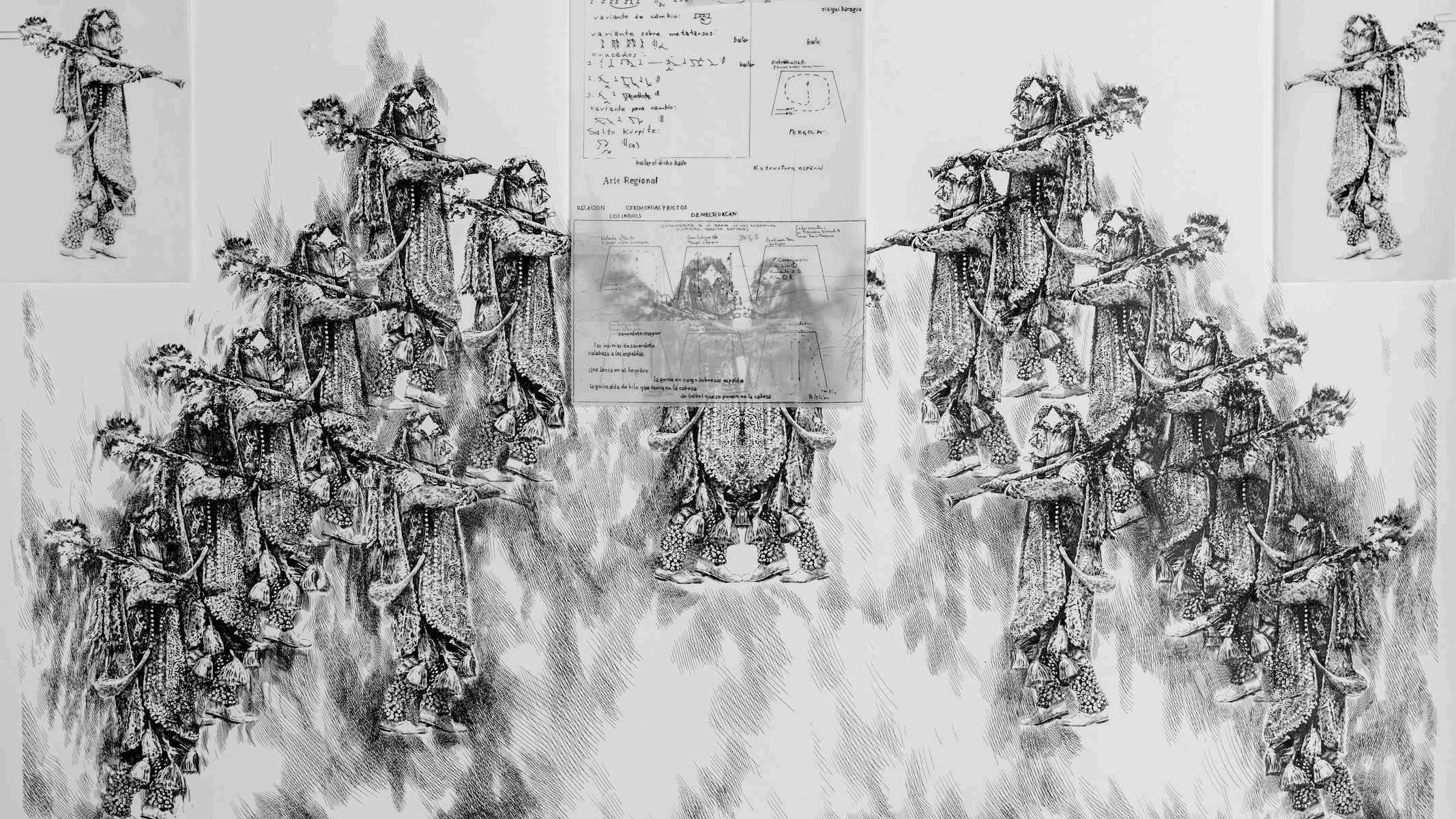 La producción de las imágenes fue posible gracias a la investigación documental. No hubiera sido posible de otra manera. El dibujo es un lenguaje, y yo no podía hablar de algo que desconocía. En el proceso, pude reconocer la belleza de la danza, una apreciación que cambió con el conocimiento de su significado y me mostró lo antigua que es su representación. Me ayudó a sentirme orgulloso de mi origen y me proporcionó elementos para que pudiera autoafirmarme p'urhépecha, reconocerme, pensarme y crear desde ese lugar.