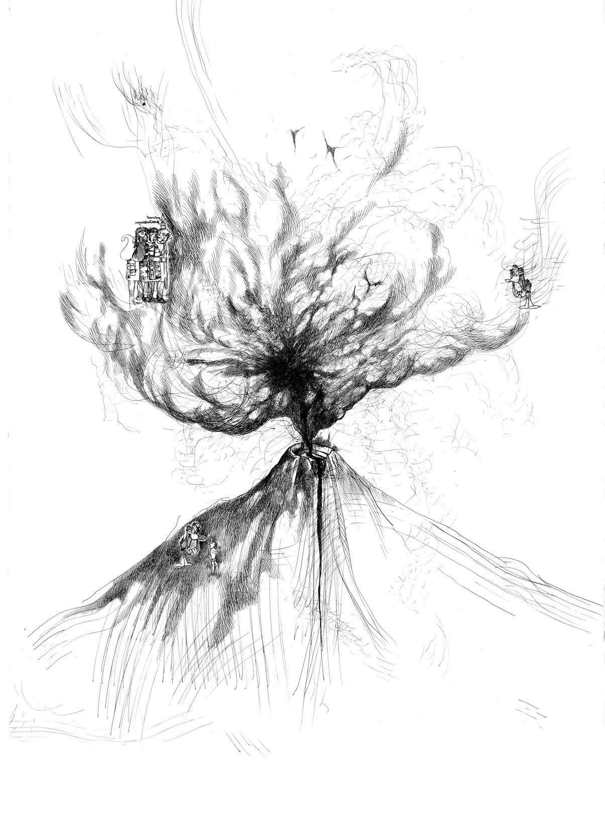 37) Fuimos un VOLCÁN 2, 2024. TINTA CHINA / papel de algodón . 50X75 cm.