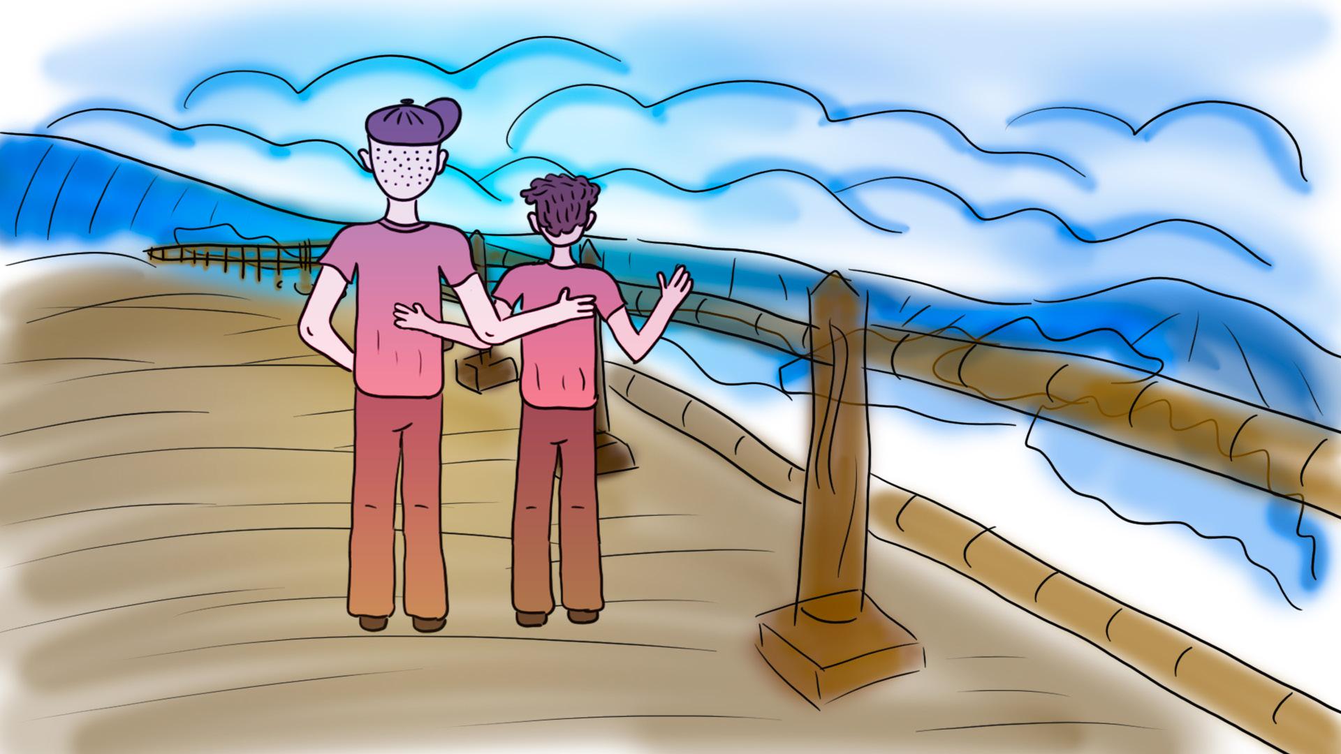 He is a gay adult of German origin who must return to his country for reasons that they both know and accept, but in his painful farewell he gives his partner a souvenir that symbolizes the protection that he will offer him from a distance.