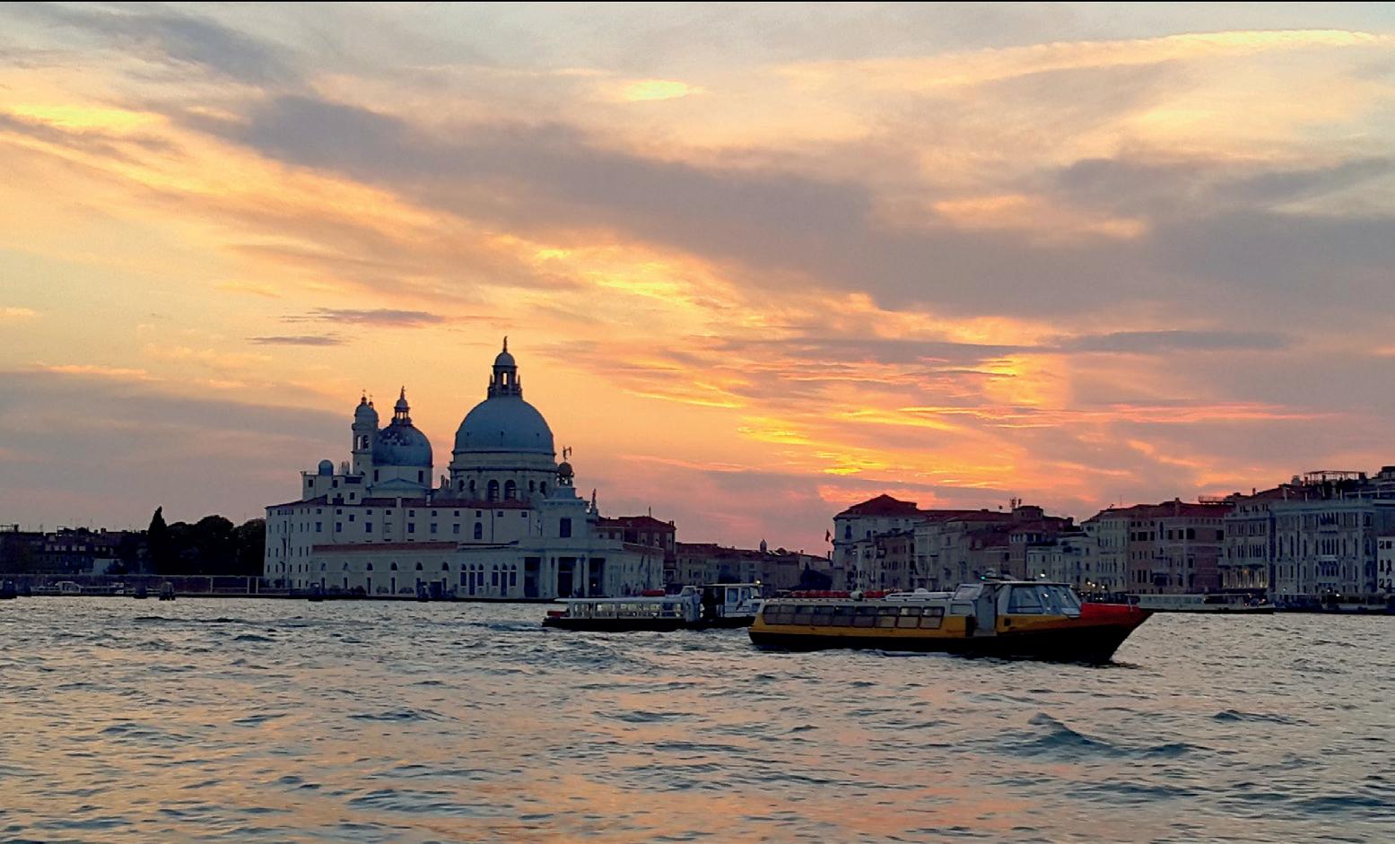 A la derecha en la parte superior, vemos, un momento compartido entre dos gondoleros venecianos, de la Serenissima Repubblica de Venezia en Italia. La fotografía en la parte inferior derecha nos deja asombrados de la belleza sin igual de los atardeceres de Venecia, tomado desde un paseo en bote a motor por el mar Adriático en los alrededores de la ciudad.