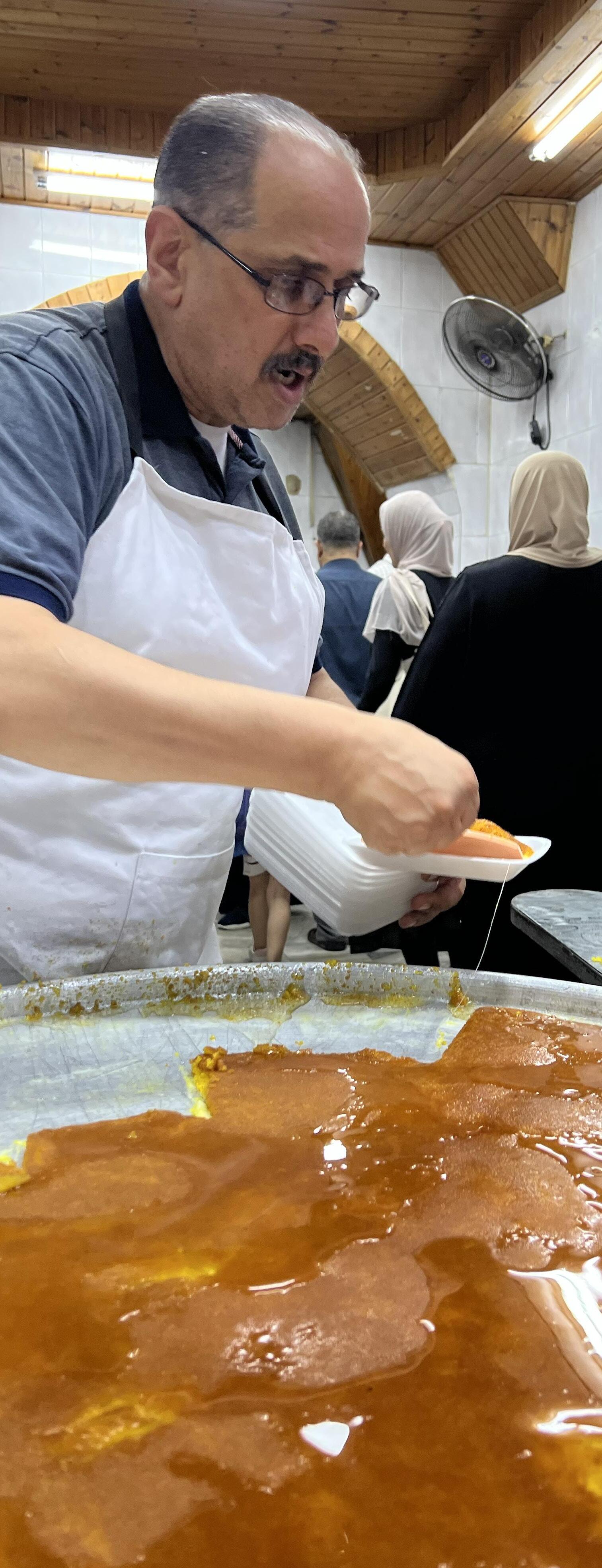 how magical it felt whenever I walked through the bakery’s doors and was greeted with the mouthwatering aroma of freshly baked treats and traditional Palestinian bread, Kaak. As we near the entrance of the village, my sister raves to my father about the crispy fried chicken store we pass by, informing him of the great role it plays in the modern Palestinian food scene.