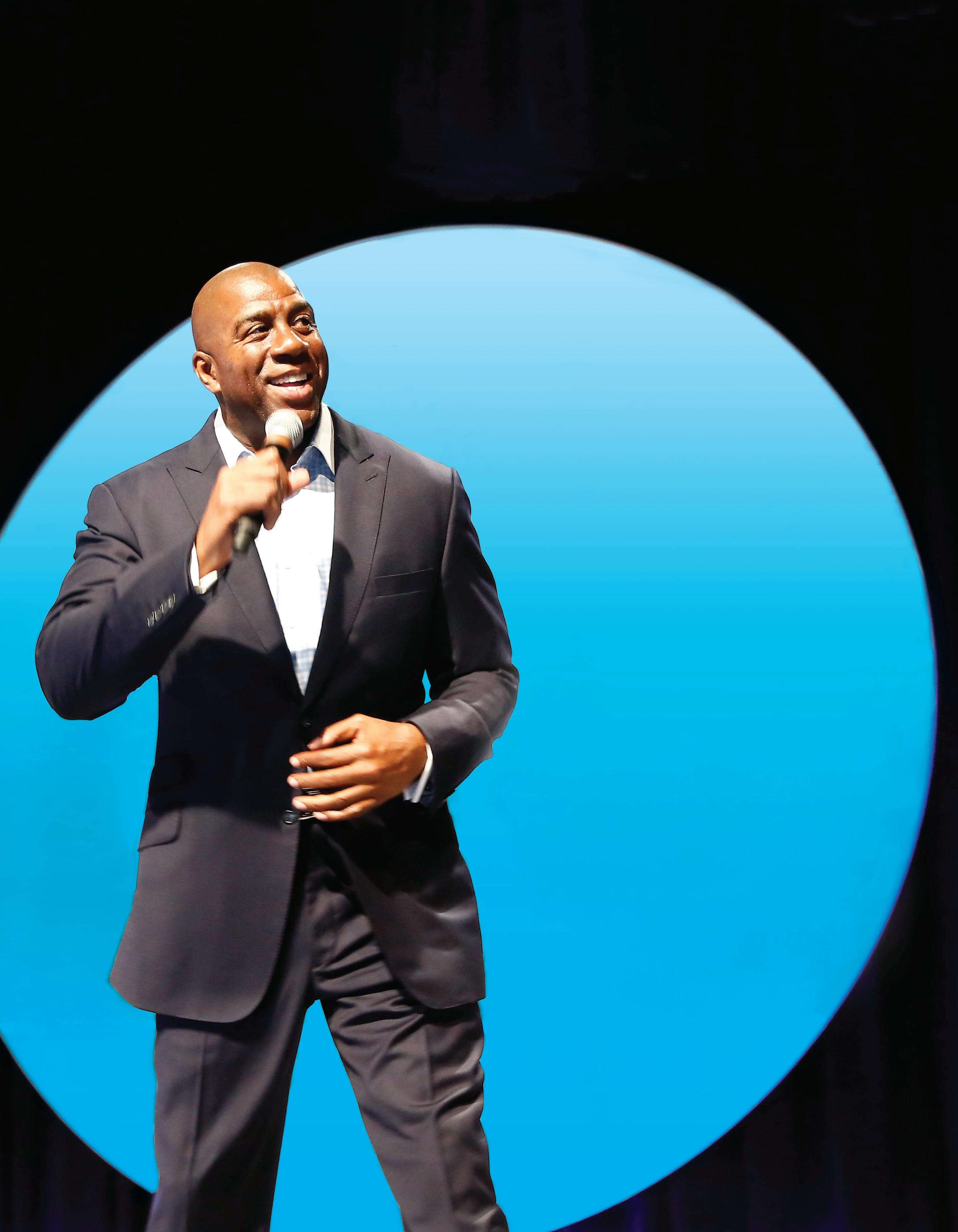 After Steve, it was time for a little magic: or 6’9" NBA legend and business entrepreneur Earvin “Magic” Johnson. As Magic took the stage, cell phone cameras came out in full force. In 10 years of XP conferences, there has never been such excitement. Magic shared his own story of choosing greatness at every step of his journey – from being a poor kid growing up in Lansing, Mich., to becoming National Champion at Michigan State University, to being an NBA champion with the Los Angeles Lakers and ultimately the successful business owner he is today. As he told his stories of greatness, he stopped along the way to take pictures and flashed that electric smile to the crowd.