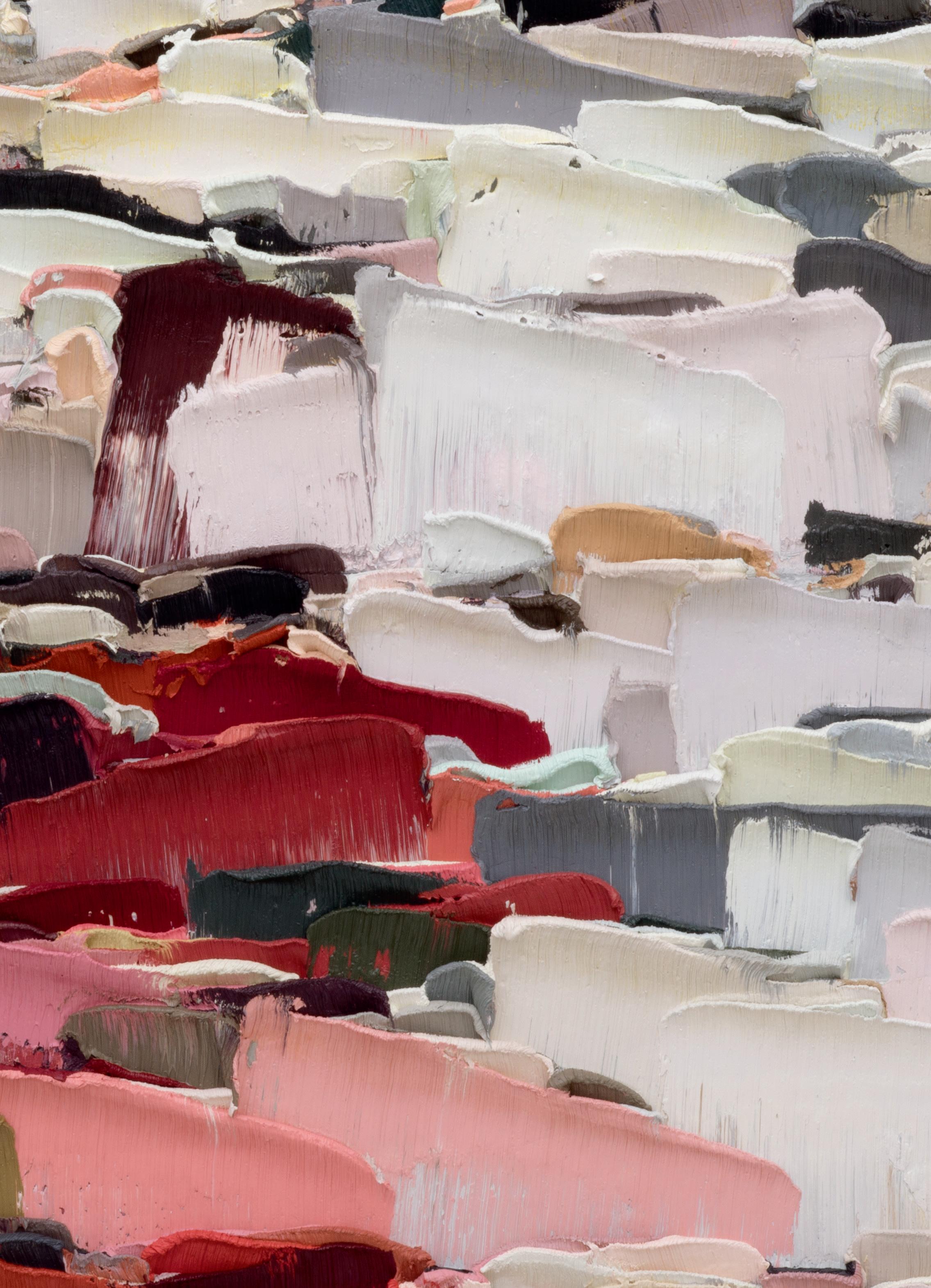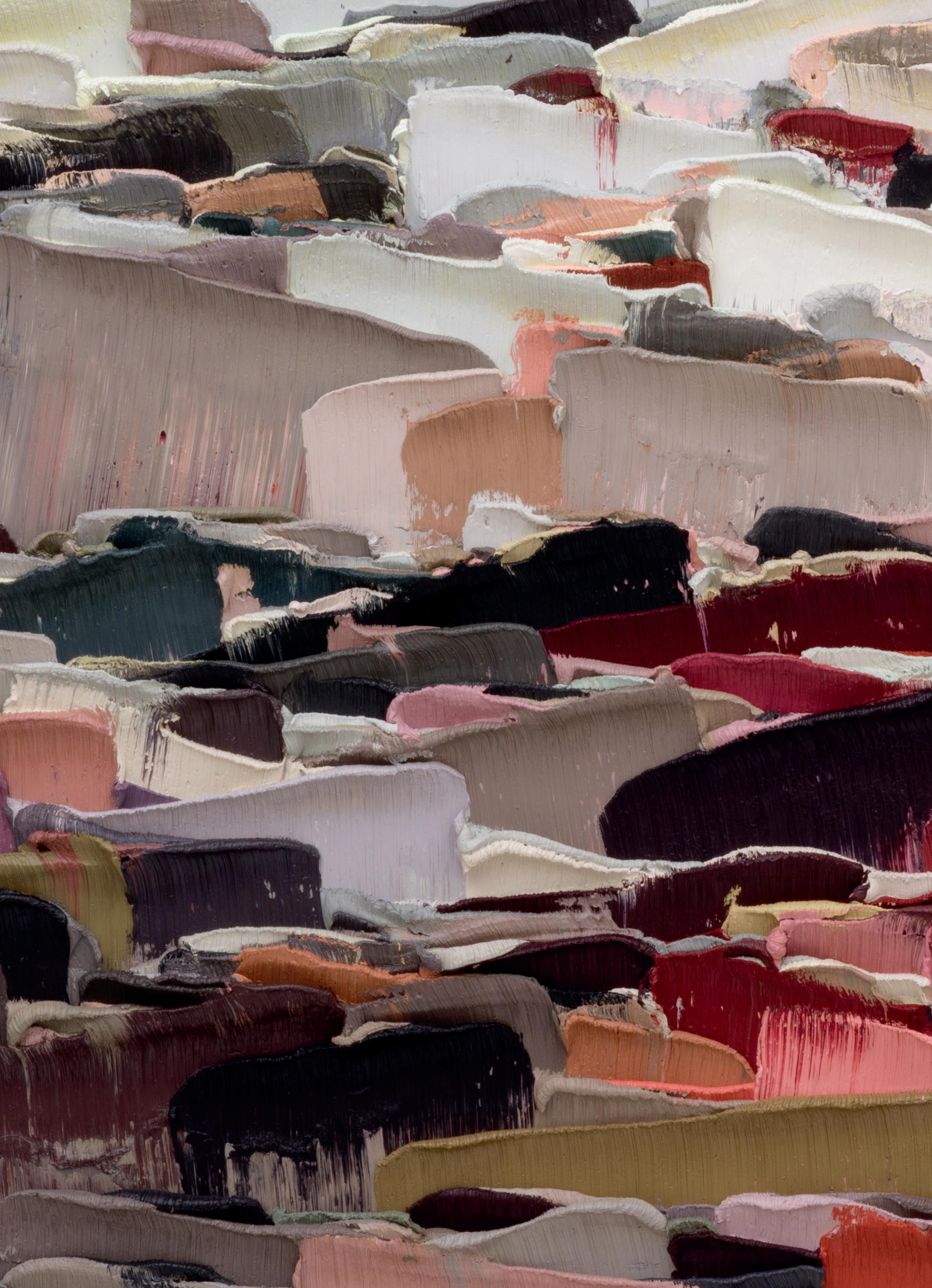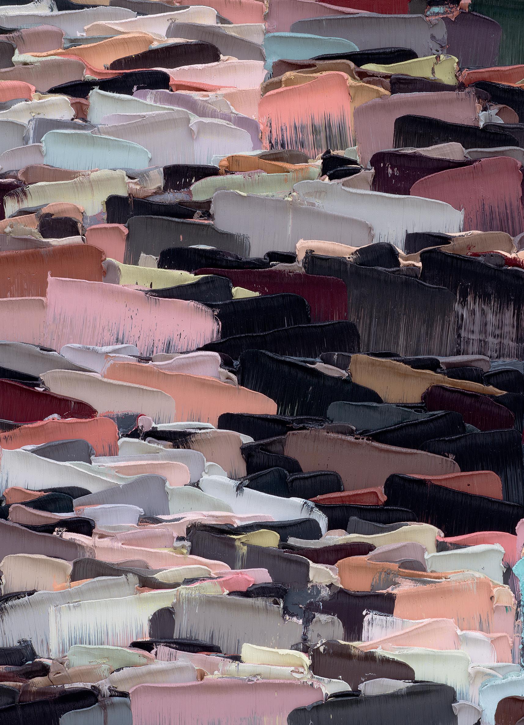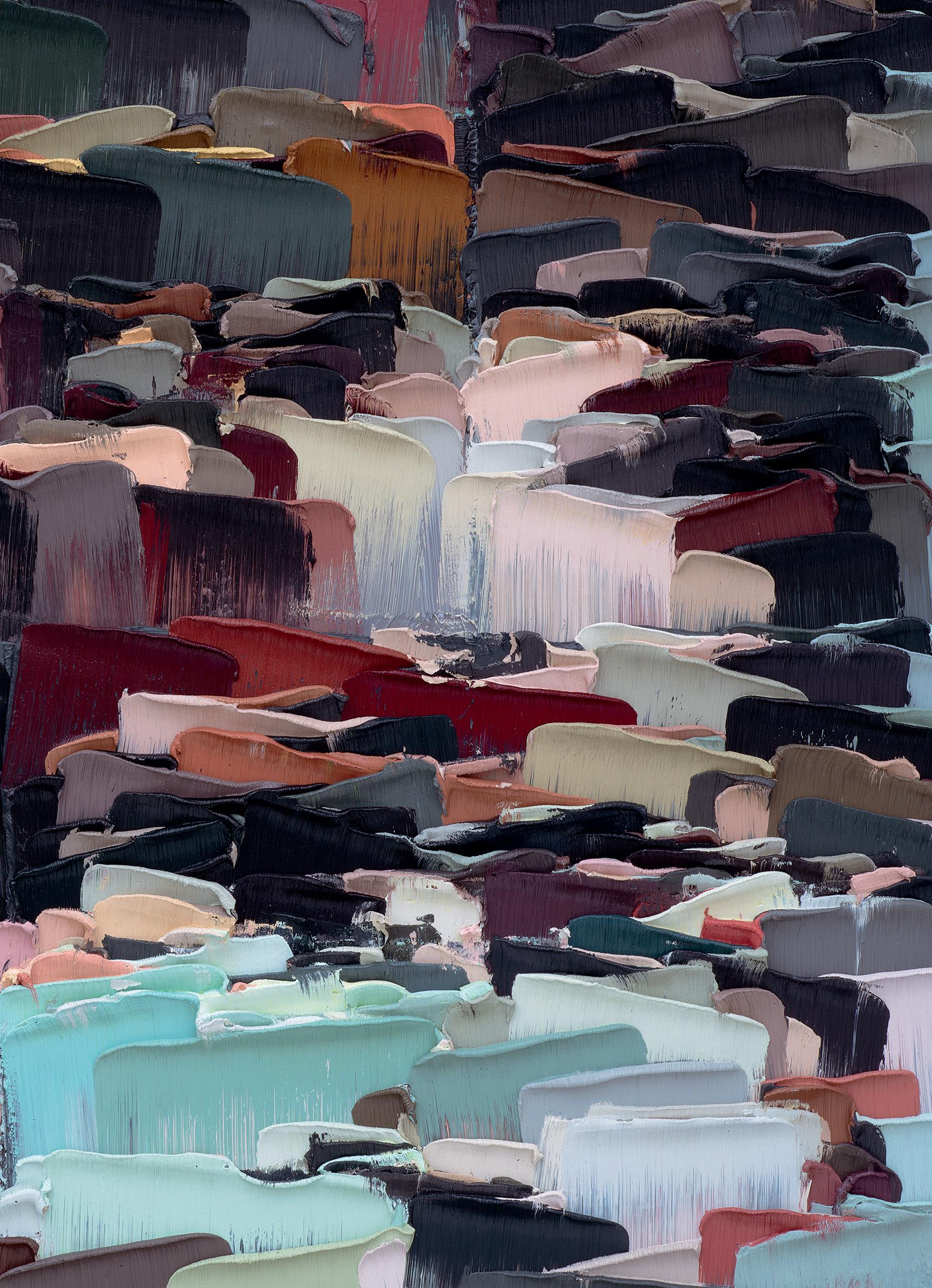 “These paintings are visual metaphors of history, like a form of simulation. Each stroke exists for the sake of existence itself. The process of accumulation follows a critical logic. Even what seems settled and comfortable may be overturned in the next moment.”
