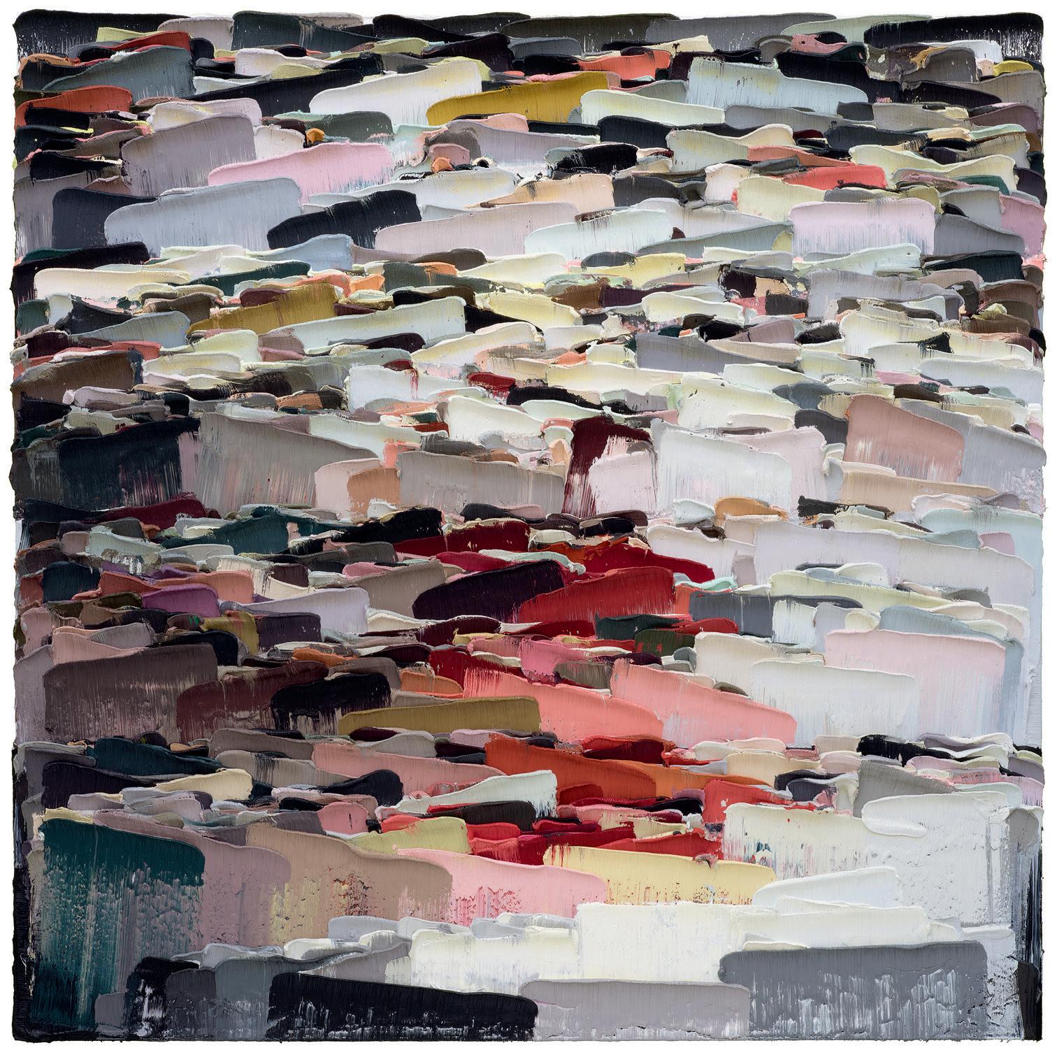 “I have no preconception of what will appear on the canvas. Every new mark arrives with its own will, yet inevitably responds to what already exists, sometimes even defined by it. These decisions happen instantly, almost by chance. I watch things happen and try to keep that state.”