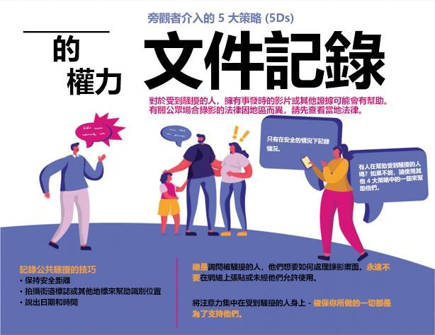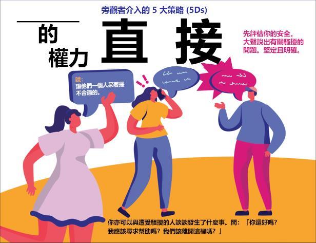 你可以利用這些干預措施來支持被騷擾的人,強調騷擾是不允許,並向人們展示他們有能力 使他們的社區更加安全。