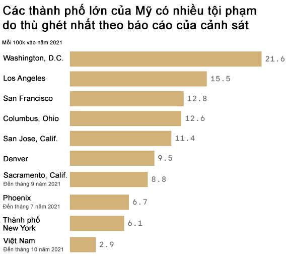 cộng 10,905 vụ thù ghét chống lại người Mỹ gốc Á và Đảo Thái Bình Dương (AAPI).