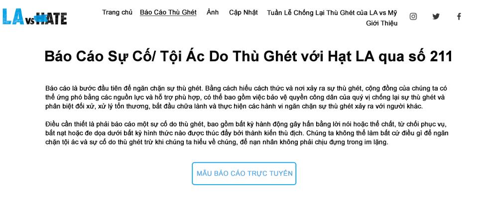 Nếu quý vị gặp phải sự cố do thù ghét, quý vị nên: