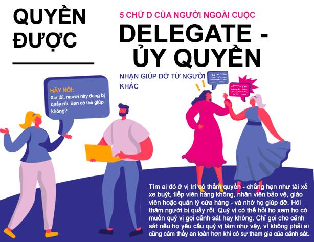 Ủy quyền có nghĩa là yêu cầu một bên thứ ba giúp đỡ trong việc can thiệp vào hành vi quấy rối. Chìa khóa