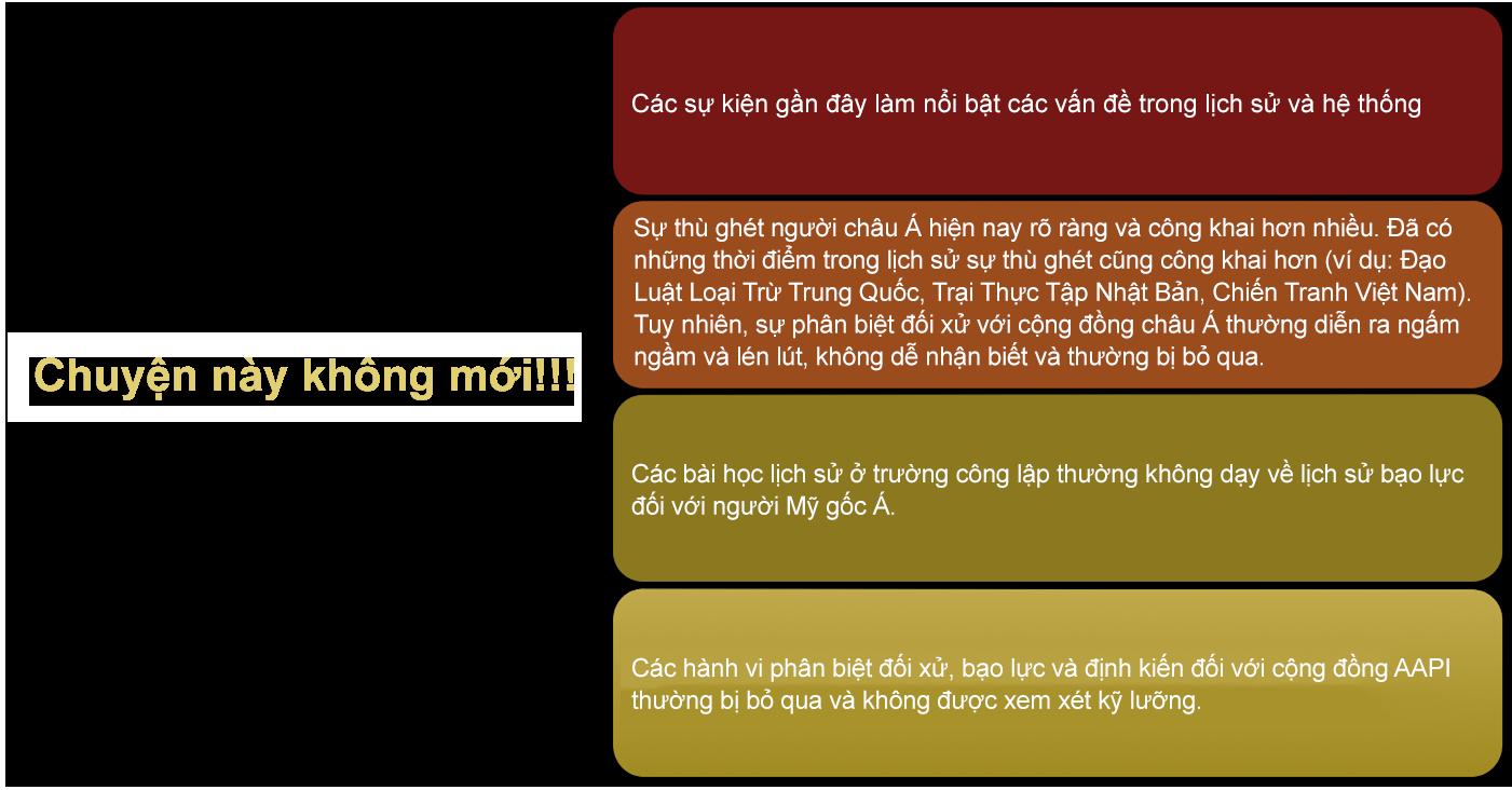 gì, sự thù ghét biểu hiện như thế nào và tác động của nó đối với các cộng đồng người Mỹ gốc Á. Chúng tôi