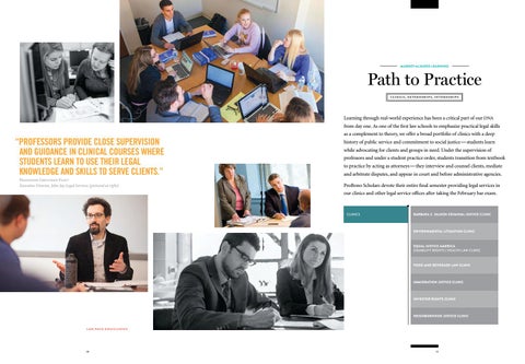 “PROFESSORS PROVIDE CLOSE SUPERVISION AND GUIDANCE IN CLINICAL COURSES WHERE STUDENTS LEARN TO USE THEIR LEGAL KNOWLEDGE AND SKILLS TO SERVE CLIENTS.” Professor Gretchen Flint Executive Director, John Jay Legal Services (pictured at right)